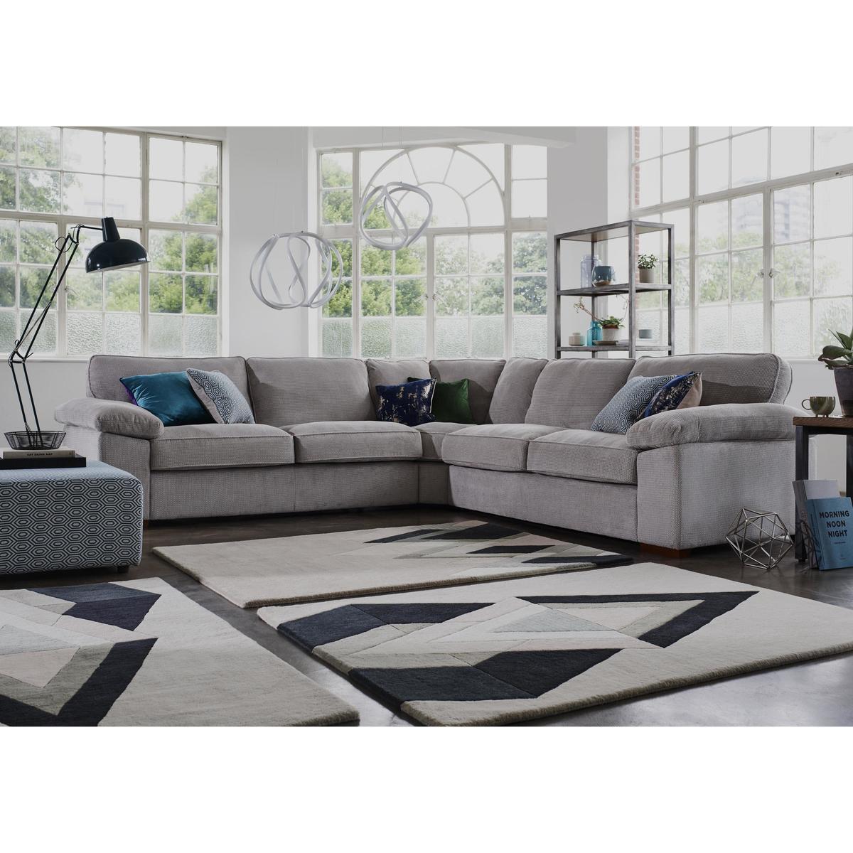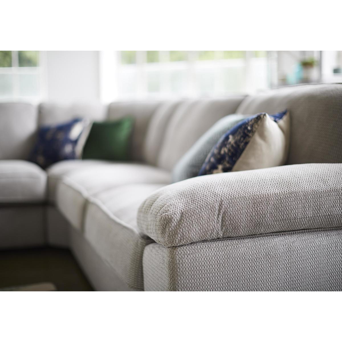 If you love the flexibility of a modular range, you’ll feel right at home with the superbly comfortable, family friendly Home collection of sofas, chairs and footstools. This contemporary range allows you to create your own bespoke sofa to suit your space. Everything is designed for your comfort, from soft fabric upholstery to deep cushioning and generously wide, padded arms. There’s even a choice of seat interior – Extraflex cushions with fibre tops or you can upgrade to luxurious Foamflex with a 5 year guarantee. This fantastic value collection, made in the UK, even includes reversible scatter cushions to add to the luxury, in a choice of fashionable accent patterns including Aztec and geometric designs. Put comfort at the heart of your home with the family friendly Home large fabric corner sofa. There’s plenty of room for up to five people to relax in style, and as this sofa is modular you can make it bigger or smaller to suit your space. This corner sofa is simply designed, with soft lines, a classic back and generously wide arms with integral arm cushions. And it’s finished with modern wood feet. The sofa includes 3 reversible scatter cushions, with the fabric of the sofa on one side and your choice of accent pattern on the reverse. All for a great value price. To make sure you’re sitting comfortably, the back and arm cushions are filled with luxury blown fibre while the seat cushions are high density Extraflex foam with a fibre topper. You can, if you wish, upgrade to expertly engineered Foamflex interiors – these offer the comfort of fibre but still keep their shape and come with a 5 year guarantee. The upholstery is soft, easy to care for fabric in a choice of colours. The Home large fabric corner sofa is British made, part of the fantastic value Home collection. Top Tip. To keep your Home fabric sofa or chair looking good, plump the seat and back cushions and any scatter cushions regularly, and – where possible – turn and rotate to ensure even wear. Plumping and rotation is important as interiors settle over time, and some fabrics can show wear on areas of more use or in direct sunlight. Using a soft brush or vacuuming with the curtain attachment weekly prolongs the life of fabric upholstery. Ideally clean professionally annually. A slight variance in alignment and back cushion levels and small gaps between units is perfectly normal in modular sofas and chairs. Gaps usually close as interiors settle.