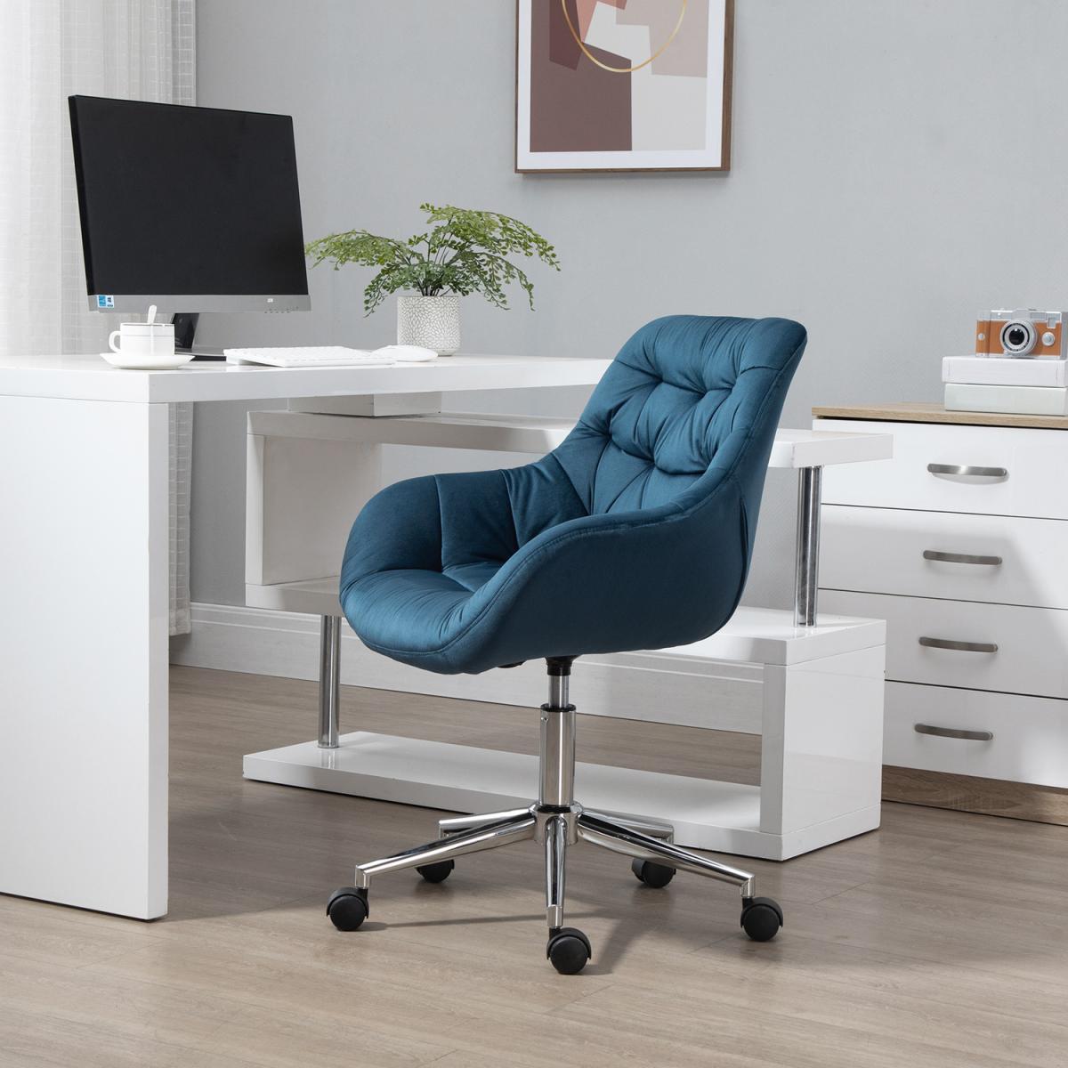 Swivel and swerve to a new luxurious way to work - this comfortable office chair from Vinsetto. Wrapped in velvet-feel upholstery which is soft on the skin, its curved shape and button tufting bring a modern look. Filled with padded from comfort, the backrest and armrests of the swivel chair support your body, whilst the wheels make it easy to move around. A fancy new approach to your 9-5 schedule.