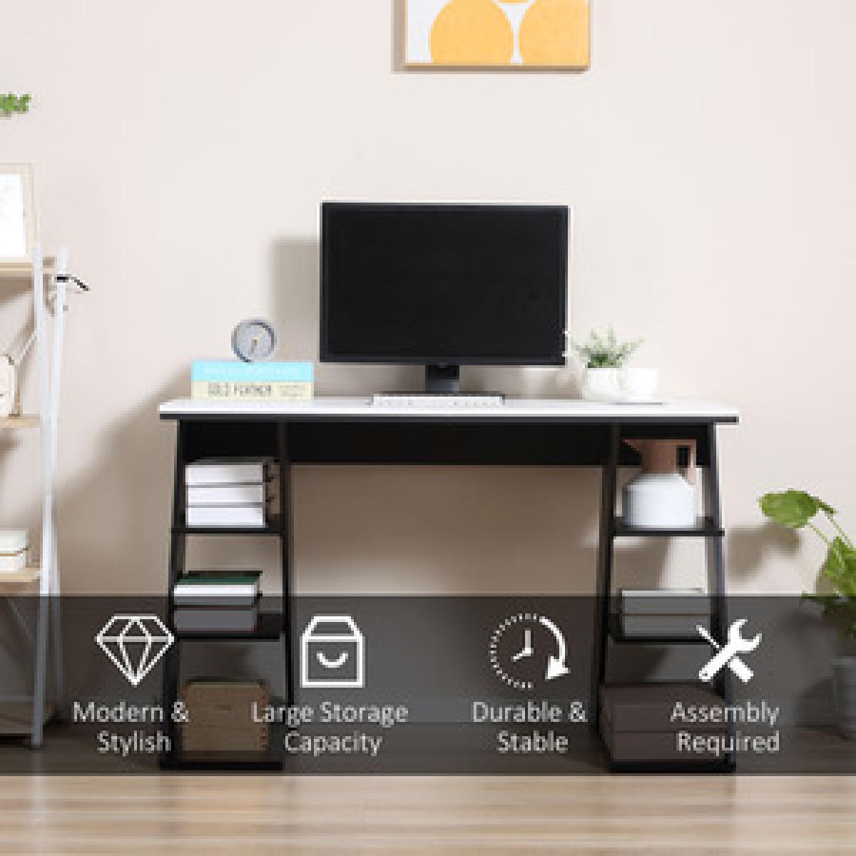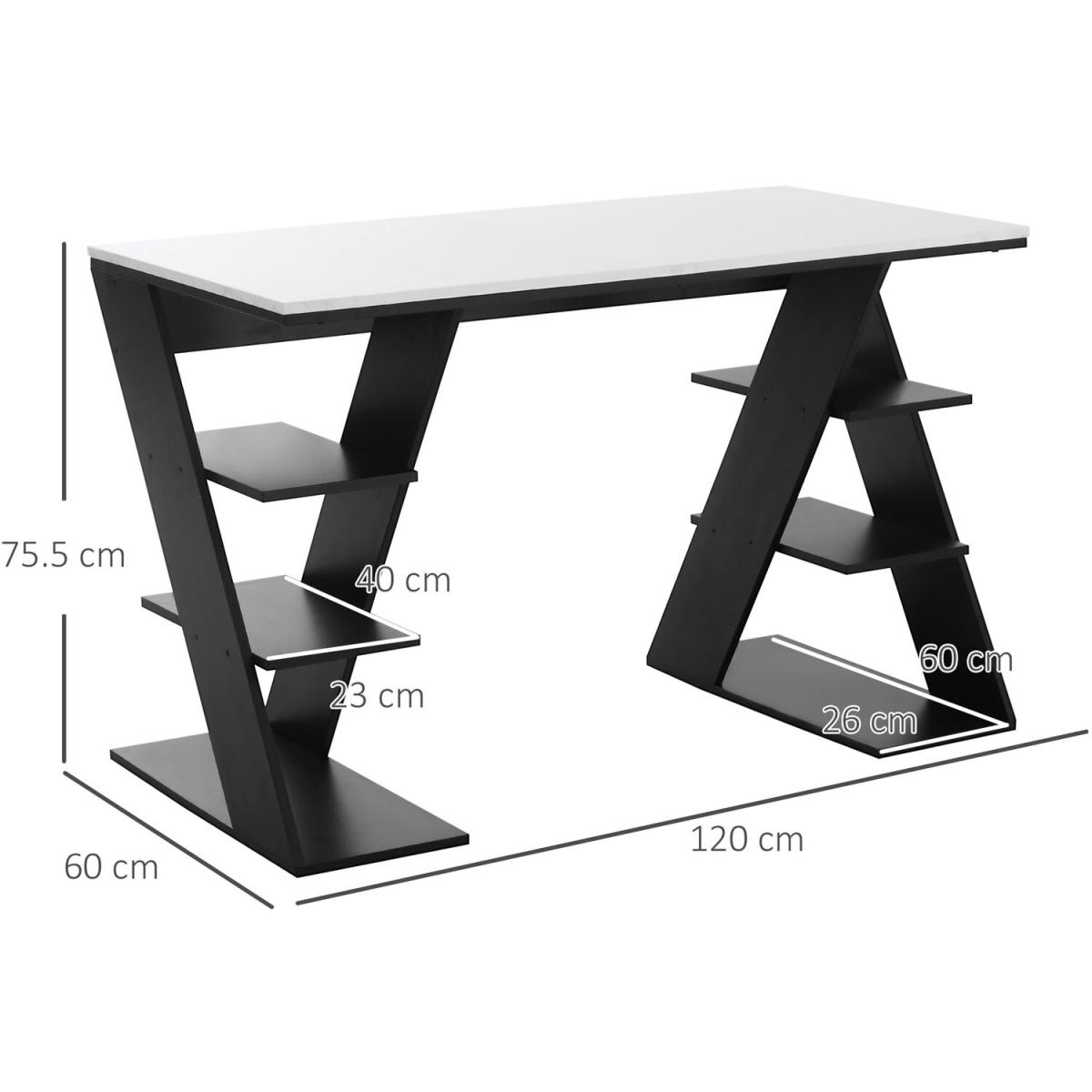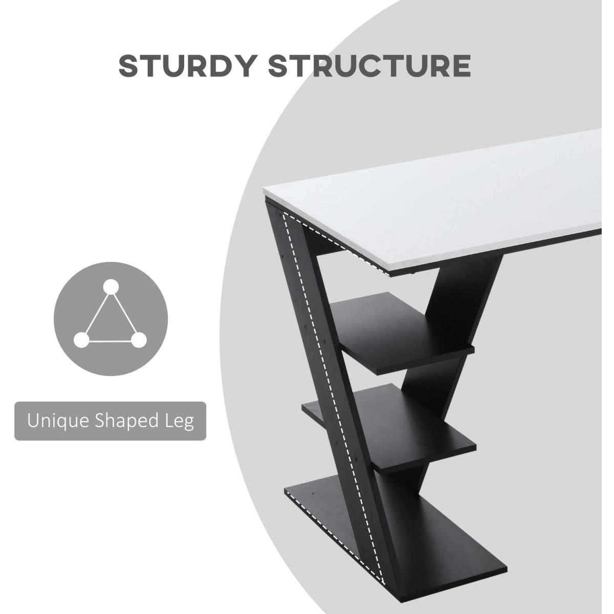 Black and white color scheme and with the chic shaped legs make the laptop workstation a great addition to your study, office and dorm. Combines a spacious desktop and 6 open shelves to meet both your working and storage needs. Besides, it has plenty of legrooms for rest and your comfort. This multifunctional writing desk will bring you a comfortable experience in intense and efficient work. You can put your daily items on it with its 30kg weight capacity.