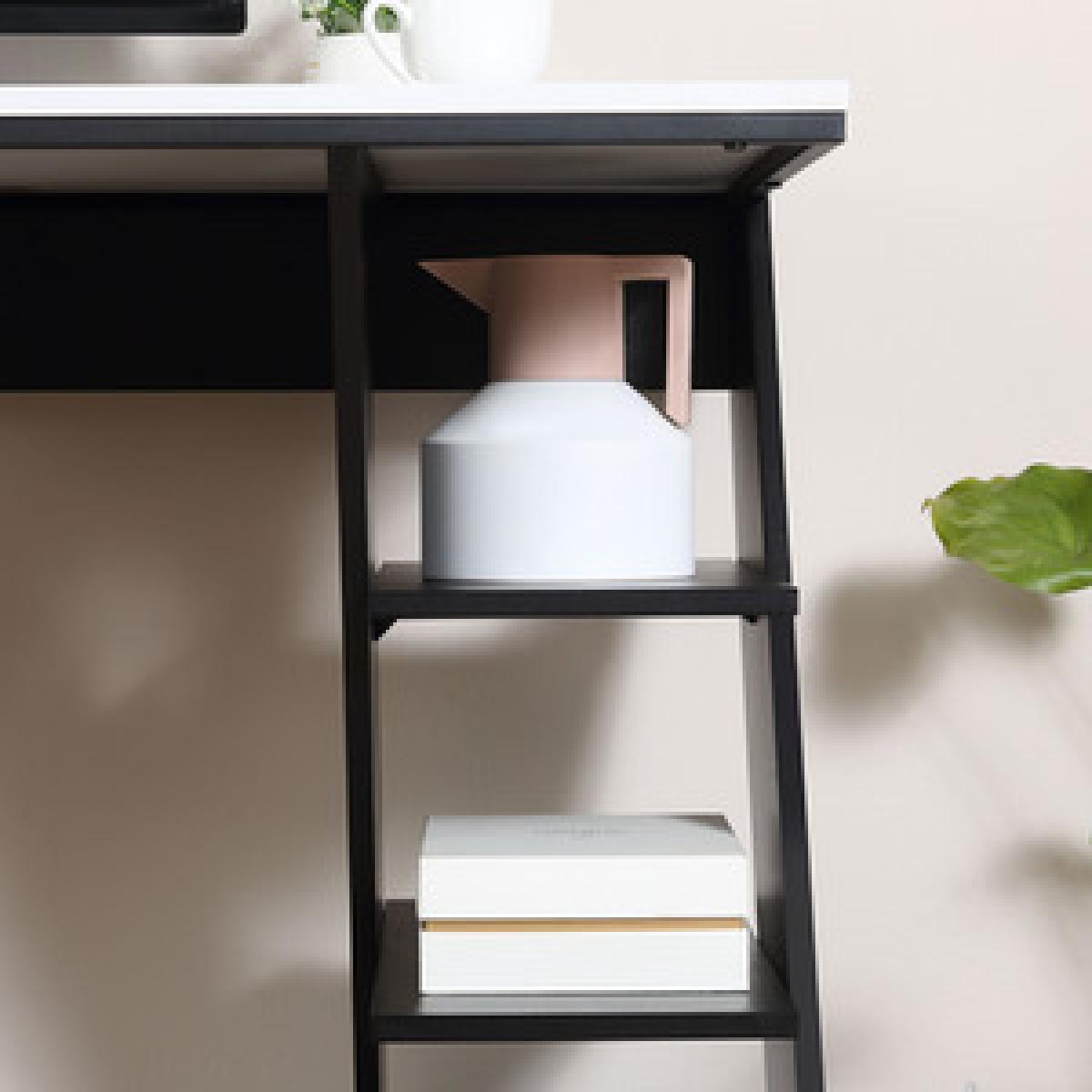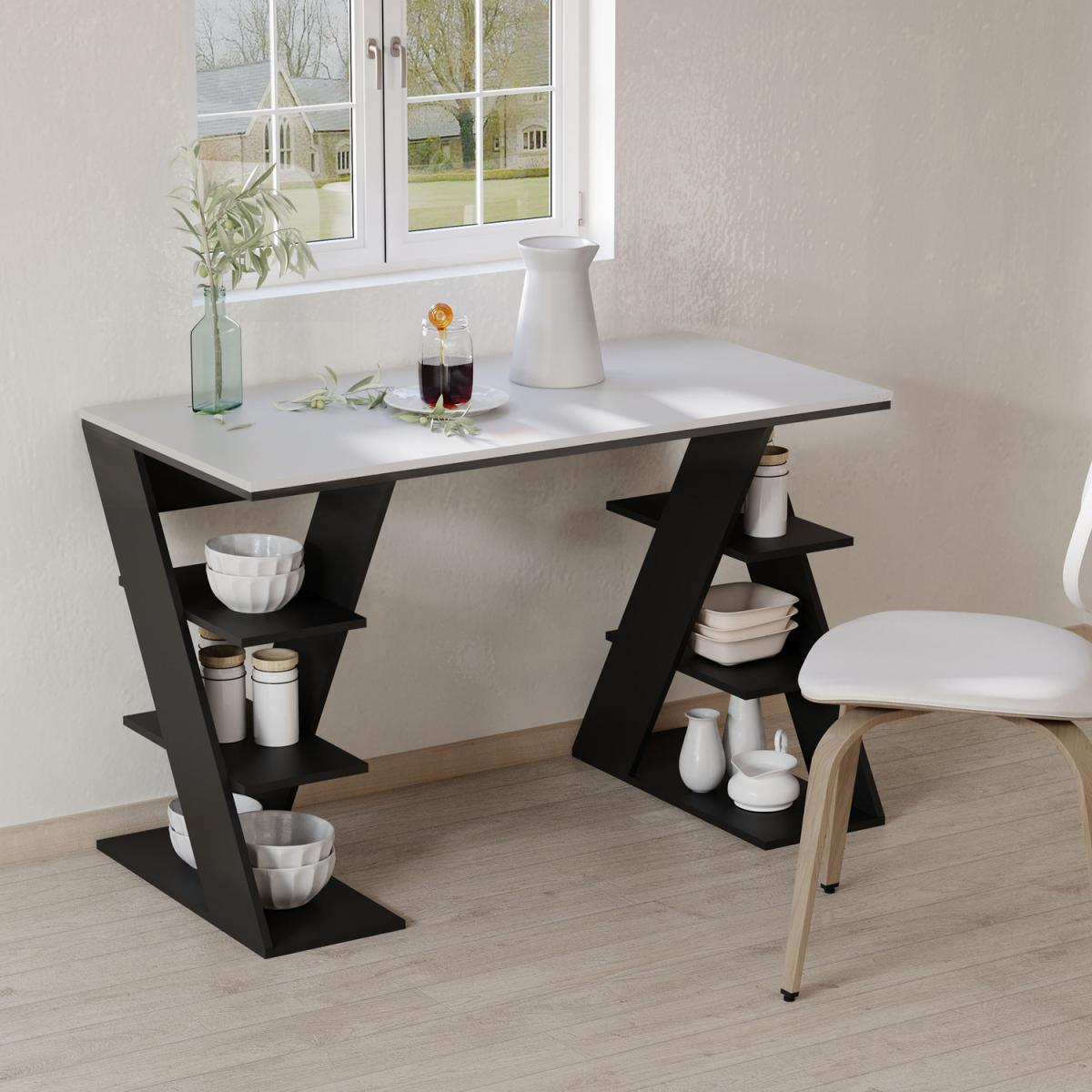 I love this desk because of its sleek, contemporary look that combines practicality with style. The black and white colour scheme makes it versatile enough to suit a range of interiors, from modern minimalism to more eclectic setups. The inclusion of six shelves offers excellent storage, helping to keep your workspace organised without taking up extra room. When styling it, consider adding a pop of colour through accessories like desk organisers or a vibrant plant, which will stand out nicely against the monochrome palette. It works particularly well in a bright, airy home office, but its neutral tones also make it adaptable for more structured or industrial-inspired spaces. Overall, it’s a functional and stylish choice for creating an efficient workspace.