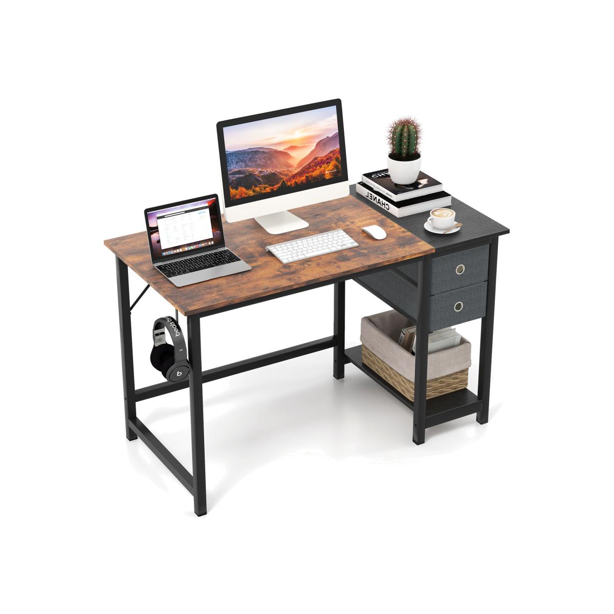 Introducing our home office desk - the ultimate solution for a clutter-free workspace! With 2 spacious drawers and a convenient headphone hook, this computer desk offers plenty of room to organize your essentials, from files and supplies to headphones and bags. Plus, the robust metal pipes and triangular reinforced structure guarantee unmatched durability and stability, making this desk a long-lasting investment.