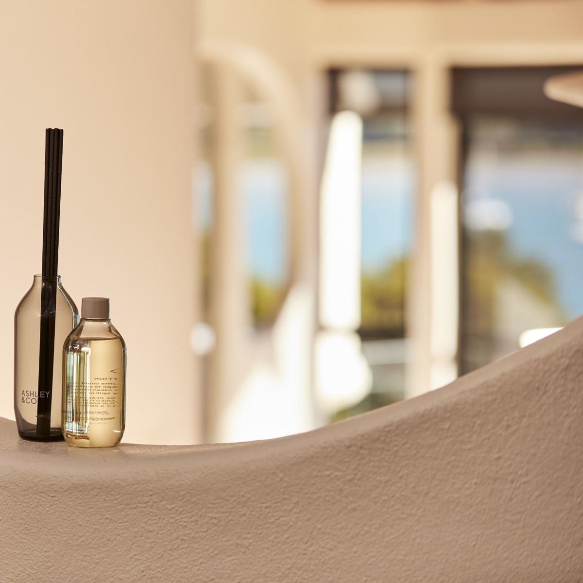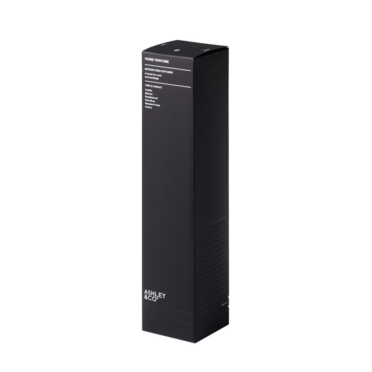 What's that scent? Where is it coming from? Either proud on display or discreetly nestled, our modern reed diffuser eliminates the conscious task of scenting your home. All day and evening, effortless but hard working, enjoy continuous elegant scent throw of your chosen perfume. Vine & Paisley | Scent Profile Dominant Vanilla, not candy sweet, is framed by lively hints of Citrus Mandarin Peel. A woody, oriental scent softly rounded by Sandalwood, Moss and Balsam base notes. Vanilla Balsam Sandalwood Oak Moss Mandarin Peel Ambra Diffuses for up to 6 months. Refill or repurpose the hand-blown glass vessel after use.