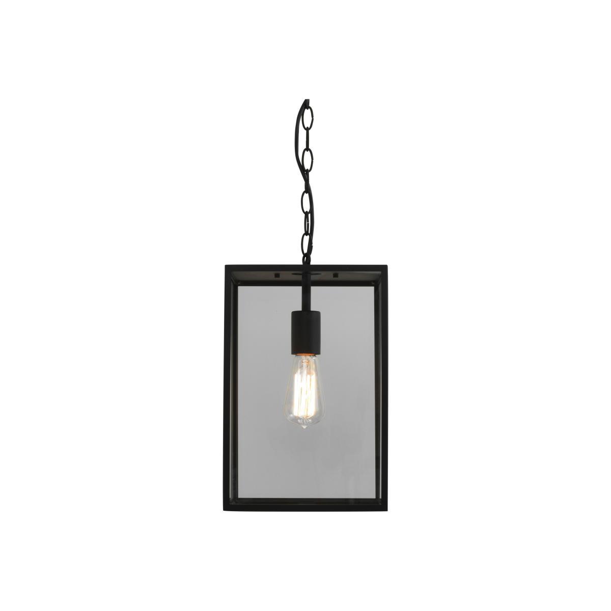 A wonderful combination of retro charm and contemporary refinement for this Homefield pendant. It revisits lanterns in a sophisticated way. The black steel and transparent glass lampshade is suspended from a chain. The transparency of the glass allows the bulb to be seen between it which becomes one of the major players in the lamp's look.