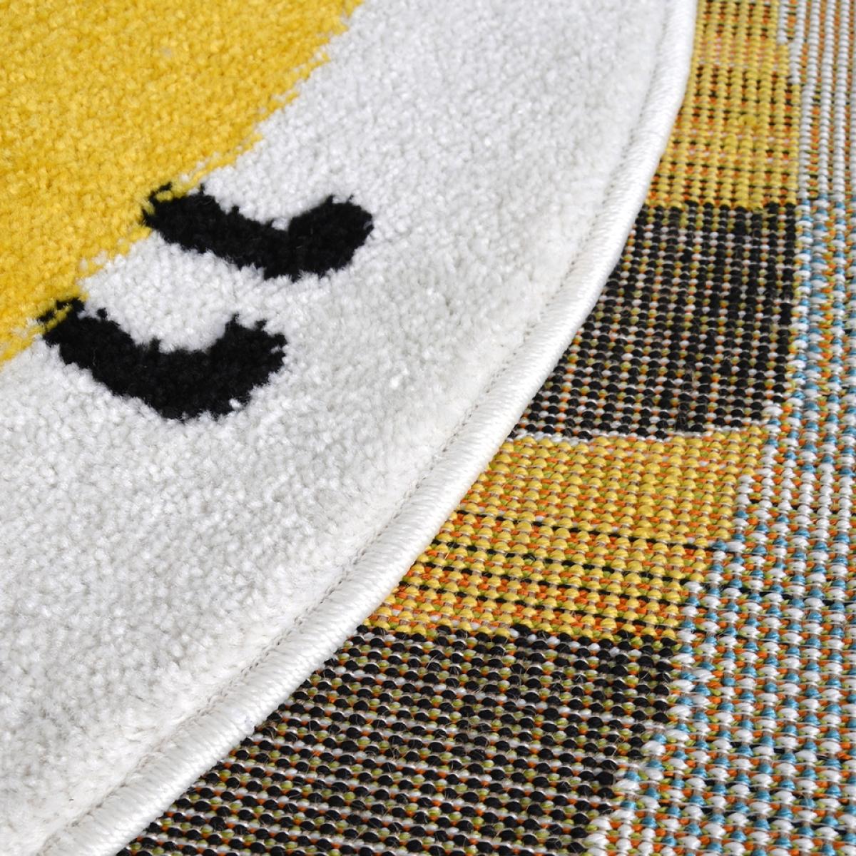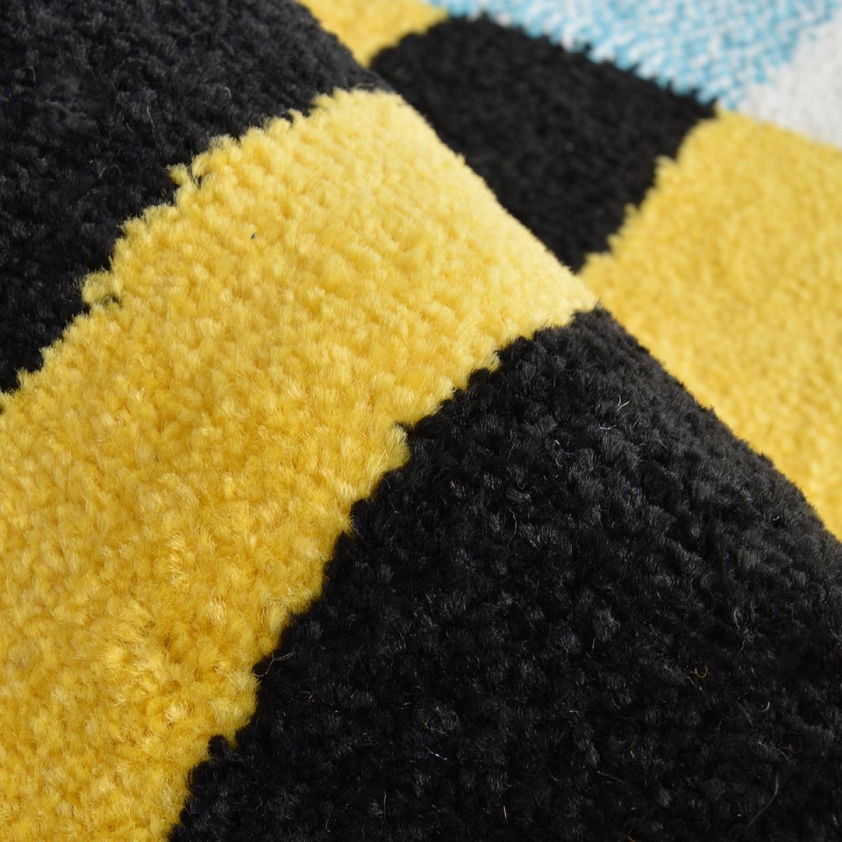 The Colourpop round bee rug is a fun yet practical addition for the home. Made with a 100% Heatset polypropylene pile, it is ideal for adding softness and texture to a child's bedroom or playroom. Hardwearing and easy to clean - simply spot clean with a surface shampoo and vacuum with an attachment to keep it looking fresh. The use of a rug grip is recommended when used on hard floors.
