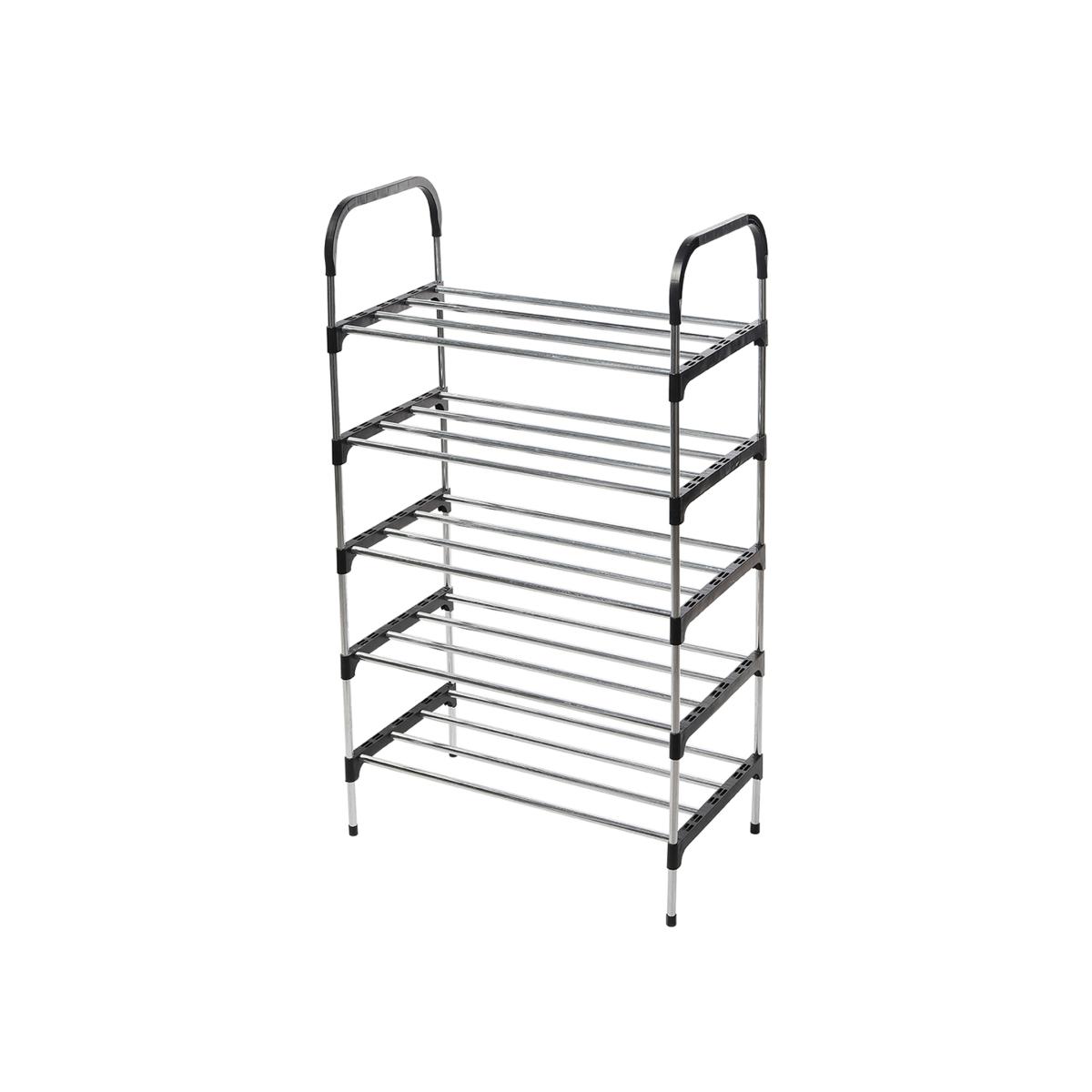 HomeScape Collective - Elevate Your Space. Keep your entryway or bedroom tidy with this Home Scape 5-Tier Shoe Storage Rack. Designed in a minimalist style, it features a lightweight yet sturdy tubular metal frame. The open slatted shelves promote airflow to keep shoes dry and fresh. Easy to assemble with no extra tools needed, this rack offers a practical and space-saving storage solution for any home.