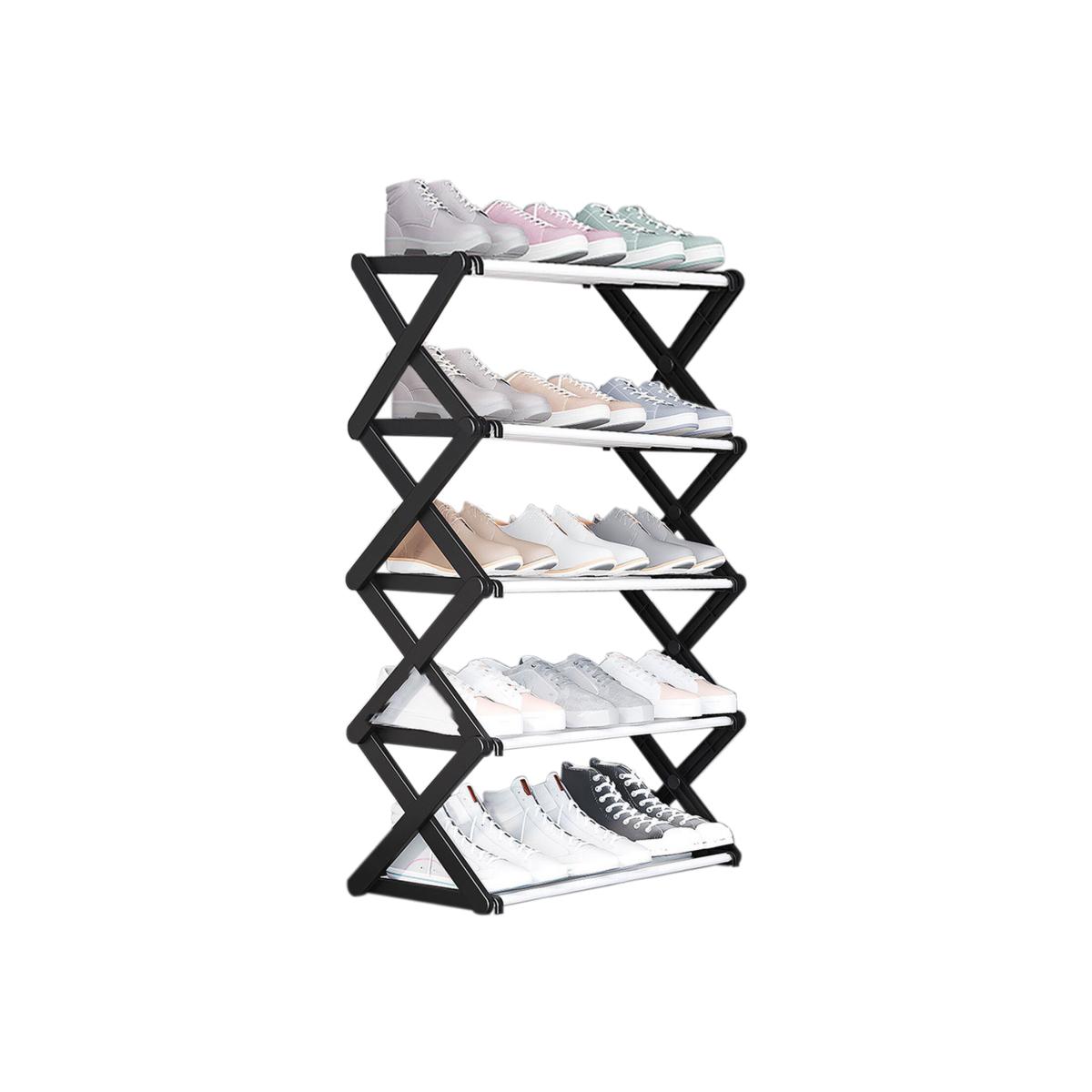 Transform your shoe storage with this innovative organiser. Boasting unique X-shaped side frames and roomy shelves, it accommodates up to nine pairs of shoes, from trainers and flats to heels and boots. Effortless, tool-free assembly makes setup a breeze. Perfect for adding sleek organisation to your wardrobe, hallway, or living space.