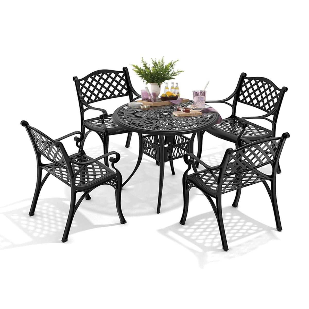 HomeScape Patio Garden Table Vintage Round Cast Aluminum Garden Furniture - Black