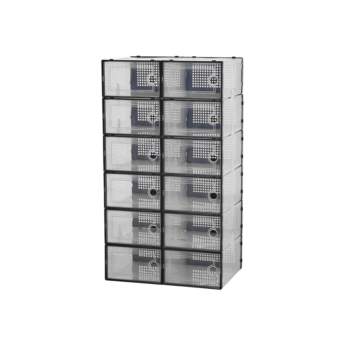 HomeScape Set of 12 Shoe Storage Organizer Stackable Boxes - Black