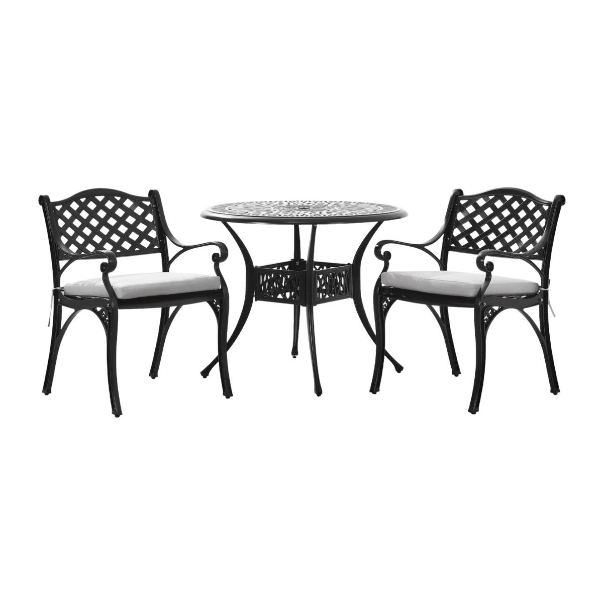 3 Piece Tulip Cast Aluminium Patio Bistro Set Table 2 Chairs - White