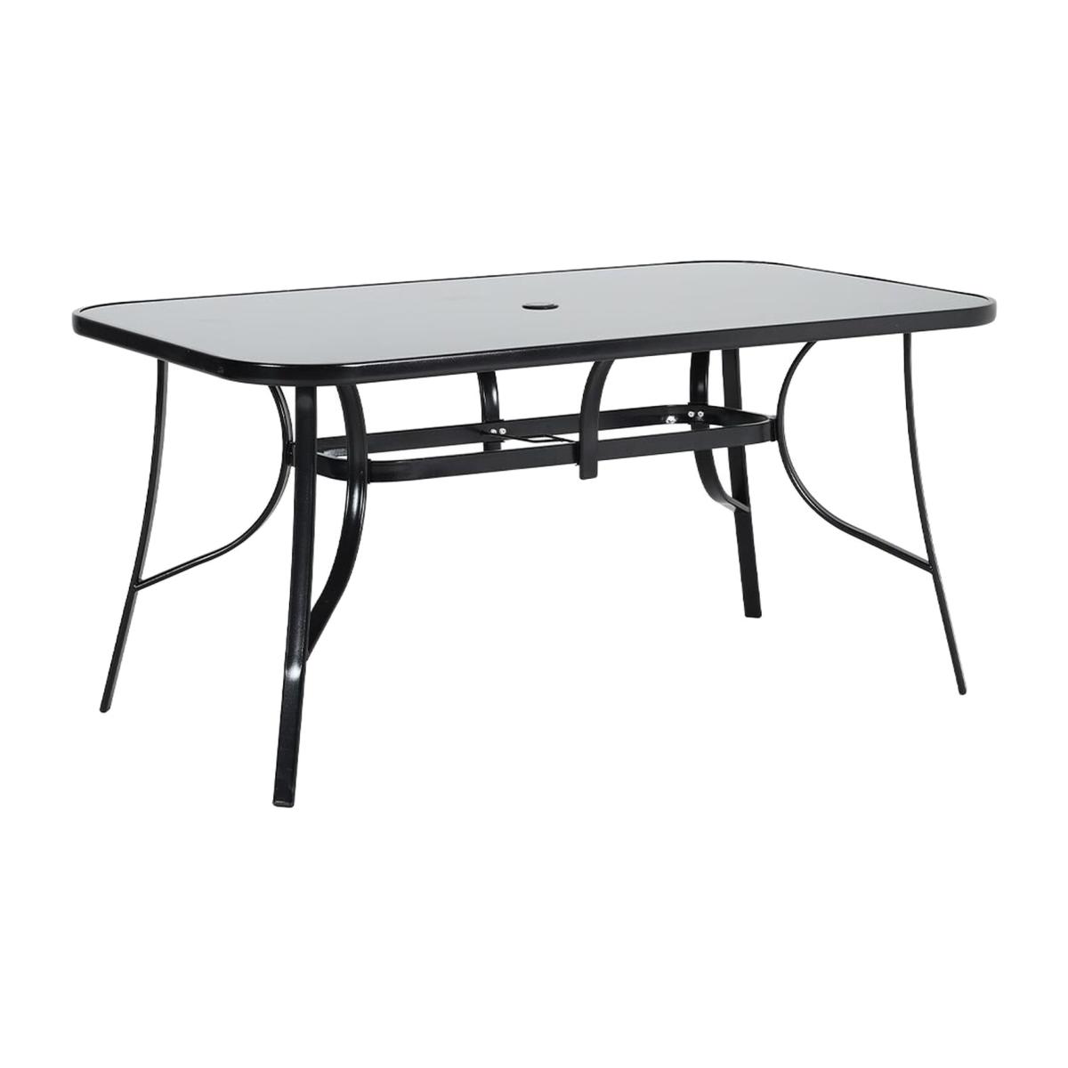 HomeScape Tempered Glass Garden Table with Parasol Hole - Black