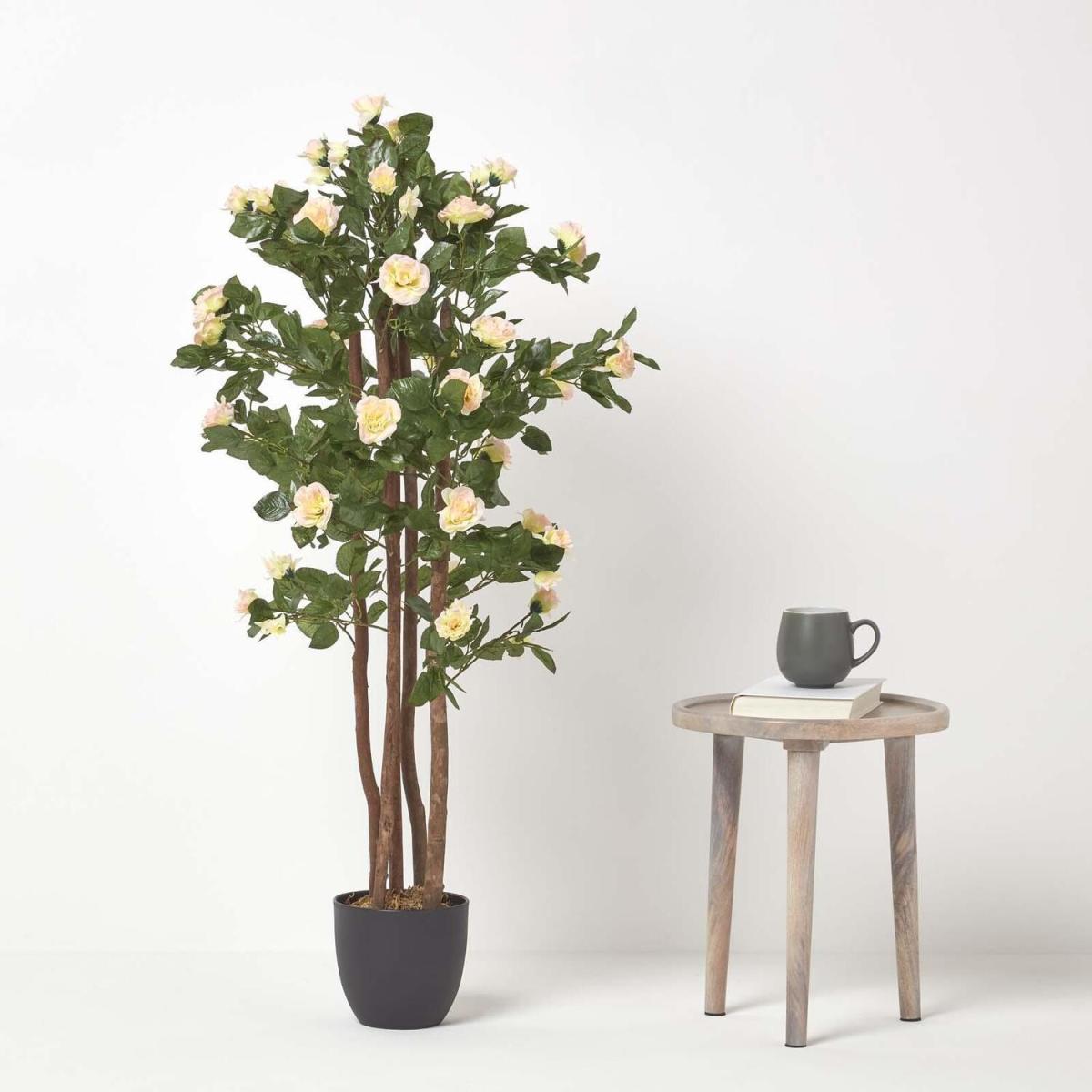 Indoor Plant Blush pink in colour, this rose tree is ideal for busy people who do not want the hassle and maintenance usually associated with keeping indoor plants. Made from plastic, this 4 foot decorative tree is easy to maintain and only requires regular dusting, perfect for those away or out of the house a lot. Life-Like Design Artificial plants are becoming increasingly popular around the home, featuring intricate rose detailing and a large volume of dark leaves, Homescapes rose tree is the perfect addition to any home. Potted in a sturdy black pot and perfect for corner and hallway decoration.