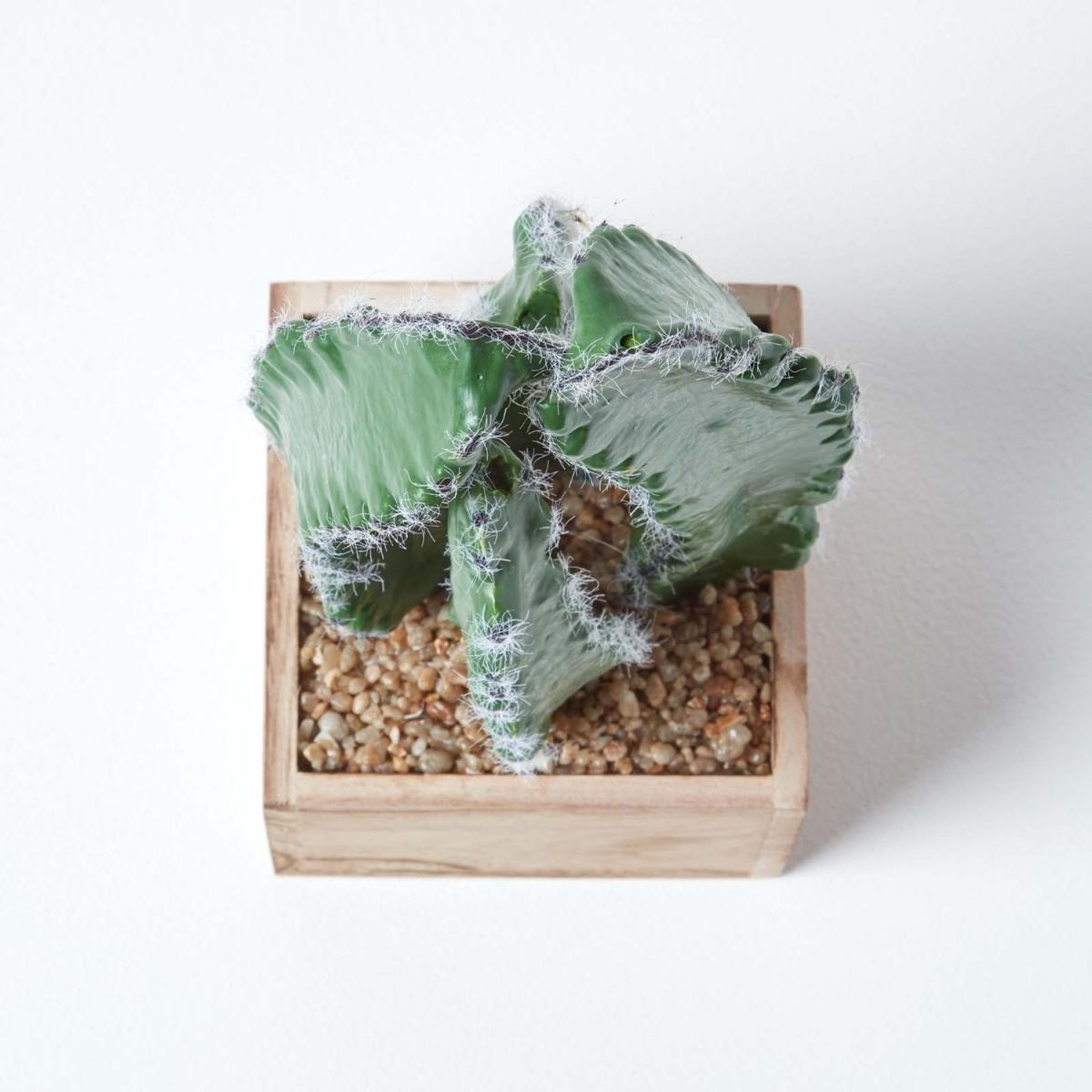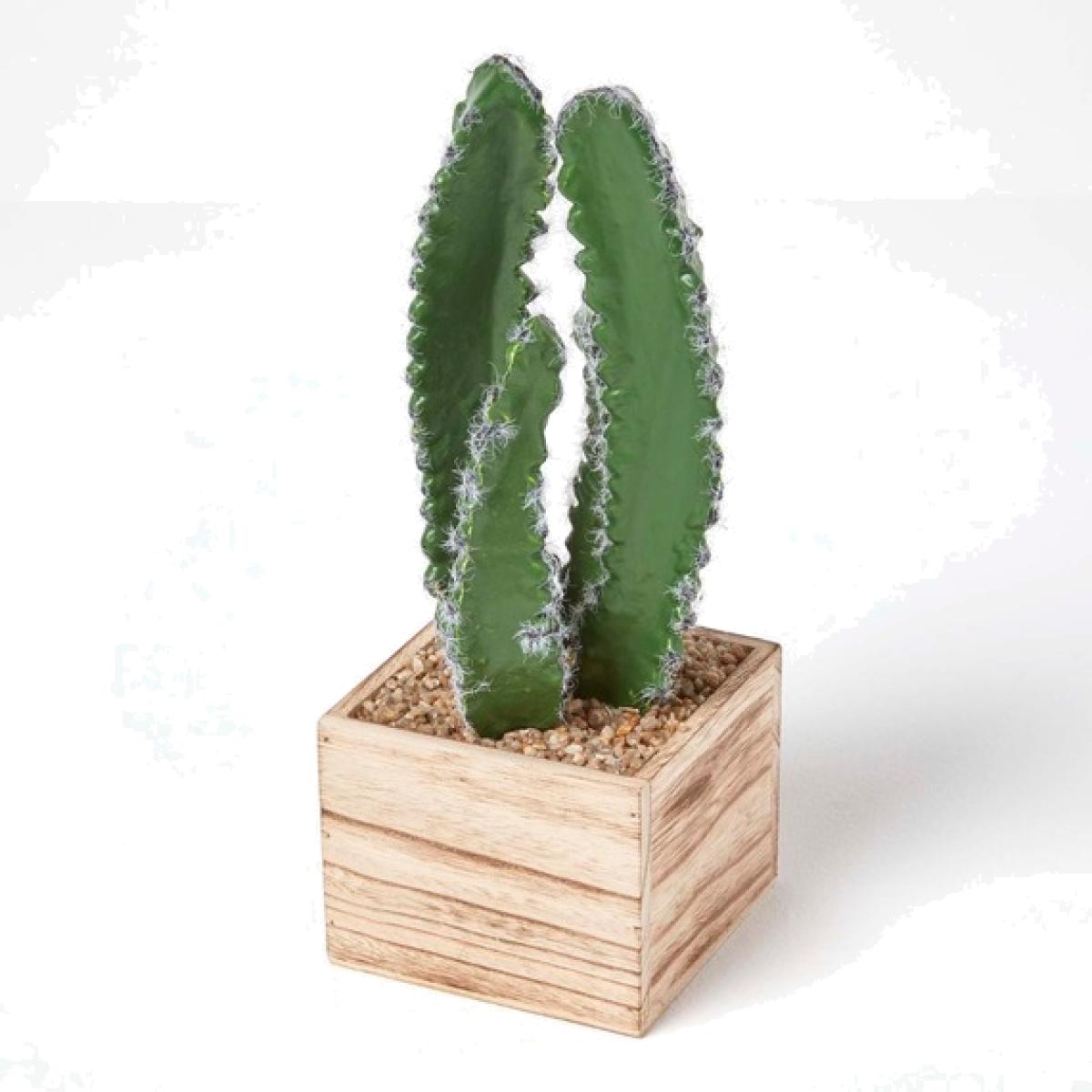 33cm tall shaped pointy cactus potted in a square wooden plants, for home or office decoration this artificial cacti is expertly handcrafted to resemble the real thing. A tall ridged cactus handmade from polyfoam and finished with an array of replica spines this decorative home accessory will add life and colour to an office desk, home side table or coffee table. Crafted from a sturdy polyfoam that has been crafted and designed to replicate the real thing it is UV treated to ensure a long lasting colour, this sturdy and long lasting cacti is surrounded by artificial gravel and potted in a real wood planter. From Homescapes collection of faux plants and trees, Homescapes are pleased to offer one of the UKs biggest collection of exclusively designed artificial plants and trees. To care for your cactus, do not place in direct sunlight and dust regularly with a cloth.