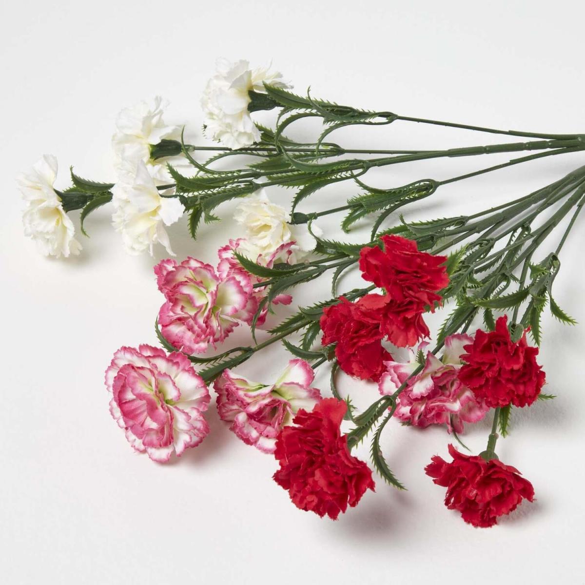 Silk-like polyester Carnation stem set by Homescapes. Crafted in a range of vibrant colours and made to be botanically correct, these faux flowers have a wide range of uses. Shop the single stem artificial range and DIY custom bouquets, floral arrangements, centrepieces, garlands and more in a style that suits you. Suitable for birthdays, anniversaries, weddings, christenings, funerals, gifts, or even just every day decor, these long lasting stems can be reused time and time again as needed. Equipped with a luxuriously long stem, so the height can be adjusted as needed. Set of 3 provided.