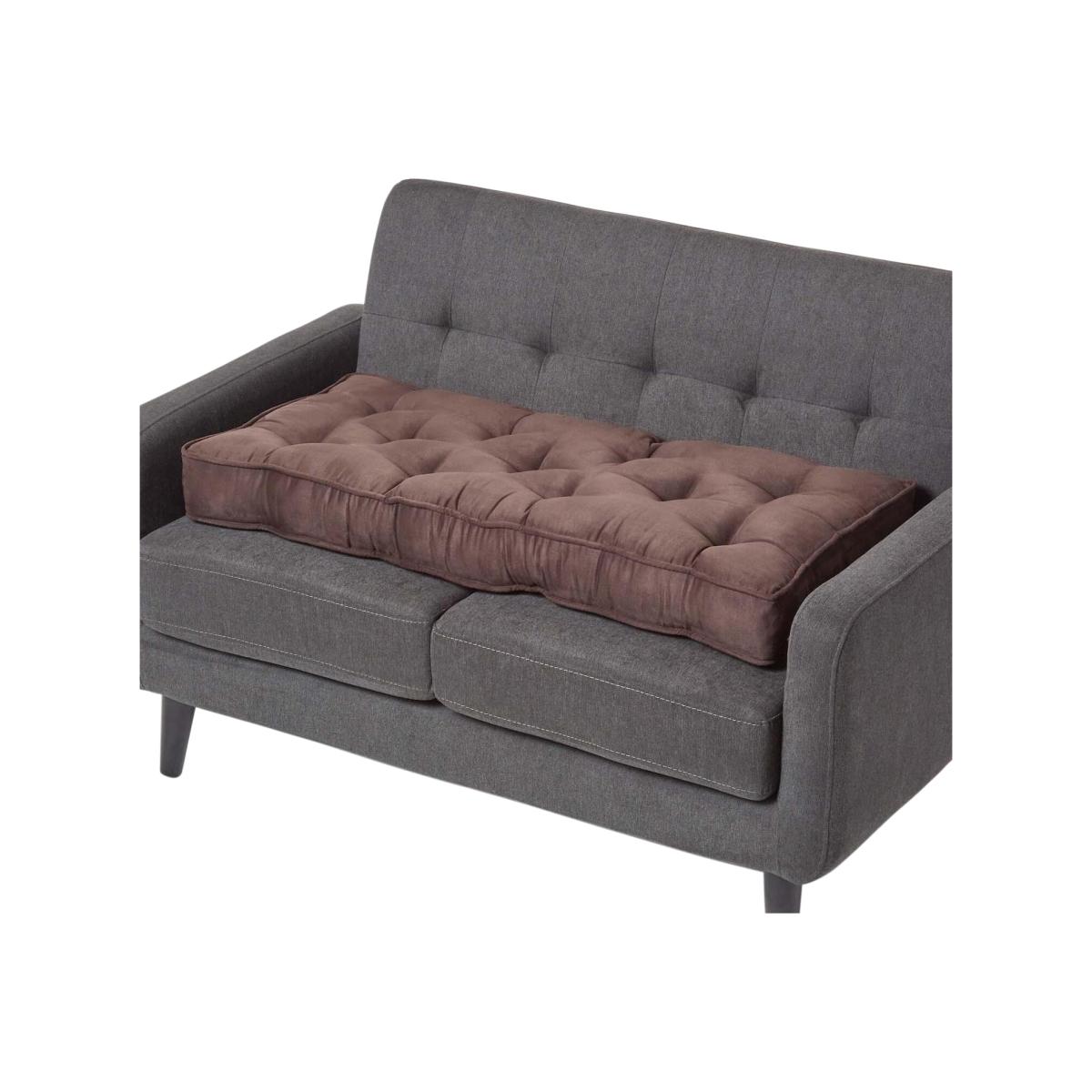 pProviding support and comfort to your 2 seater sofa, this long 2 seater booster cushion comes in classic black faux suede, so it feels incredibly soft to the touch. Generously filled with highly supportive polyfibre that retains its shape and firmness over time, Homescapes booster cushion is designed to last and last and will not become flat even after daily use. It features a stylish quilted design adding more comfort, as well as a carry handle to make transporting this booster cushion easy.p p. Designed to be used on 2 seater or small 3 seater sofas, Homescapes booster cushion will add a depth of 10 cm to your seat, aiding sitting and standing. Ideal for the elderly, for post-surgery or for those who suffer joint problems, this booster cushion will provide you with the comfort and support you need. Also ideal to use as a floor cushion in nurseries or kids rooms, or as a super thick bench seat pad. Covered in faux suede, it is highly durable and soft to the touch. Available in a choice of colours, find matching single armchair booster seats and more from Homescapes. Pack includes one 2 seater booster cushion only.