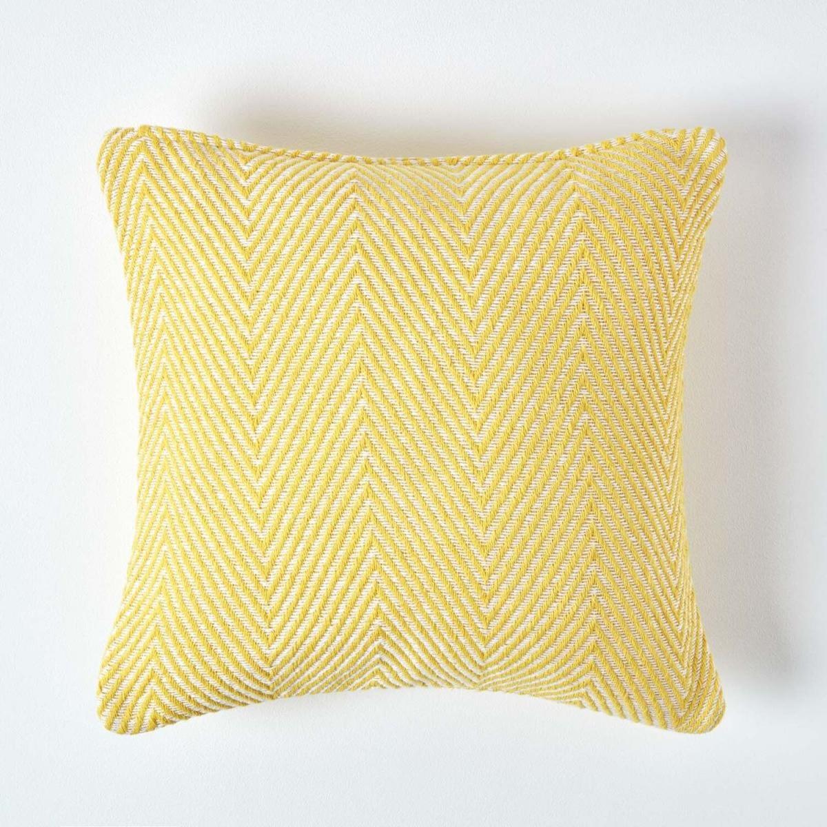 I love this yellow cushion cover for adding a pop of colour to neutral or monochrome interiors. The chevron pattern gives it a subtle texture that works well in contemporary or boho-inspired spaces, bringing a bit of visual interest without overpowering the overall look. It’s versatile enough to pair with plain, chunky knits or more intricate textiles, making it easy to style on sofas, armchairs, or even outdoor seating. Practical styling tips include mixing it with other cushions in complementary shades or patterns for an eclectic vibe, or using it as a statement piece in a minimalist setting. The size is perfect for adding comfort and colour without overwhelming the space.
