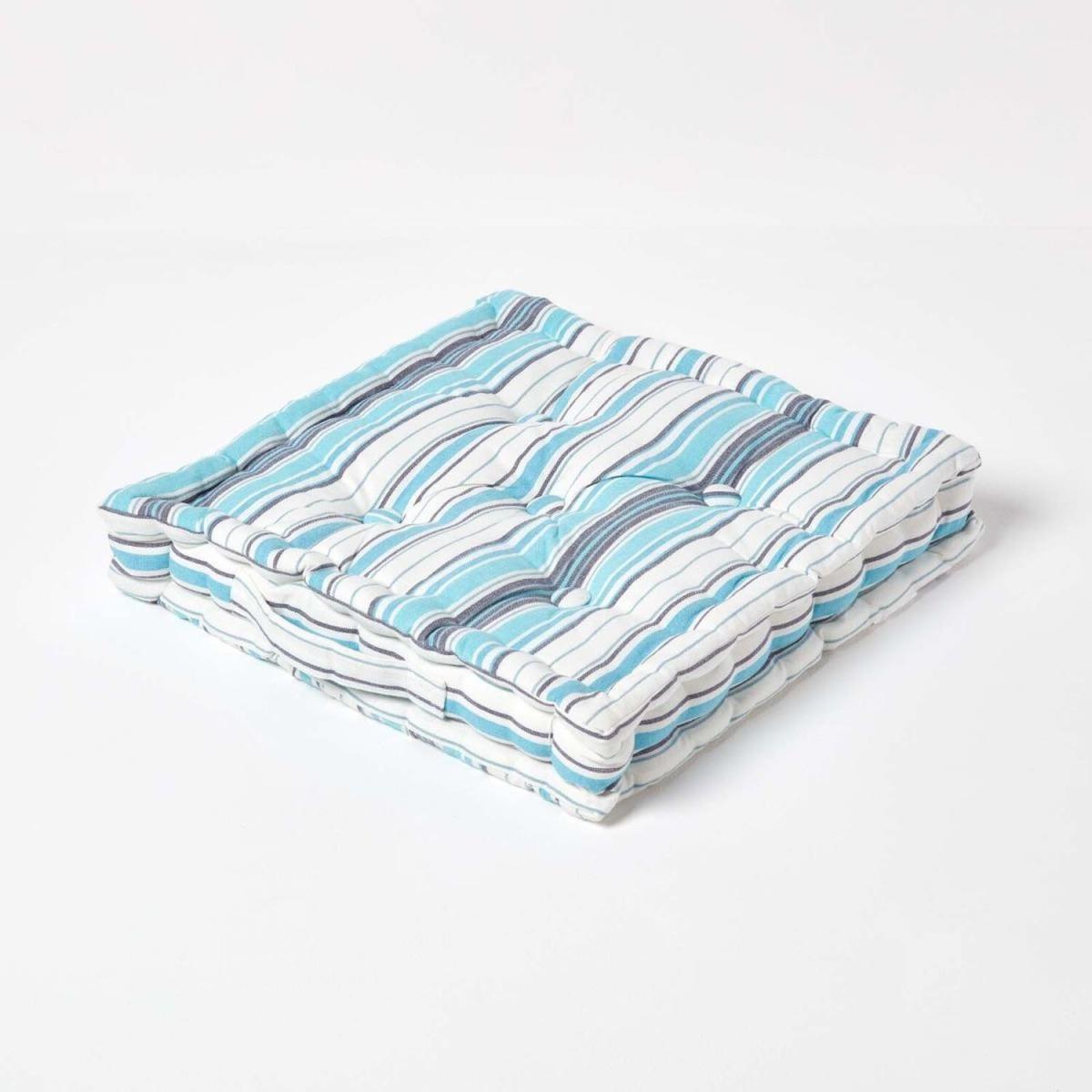 Homescapes square floor cushions are manufactured with cotton fabric and filled with high quality resilient fibres. These cushions coordinate beautifully with the other Homescapes soft furnishings like throws, cushion covers, kitchen textiles and curtains in the same or similar designs and fabrics. The selection is huge and the quality is top class. These cushions can be used as chair pads, seat pads, dining booster cushions, children cushions and garden seat cushions. Since the fabric is not waterproof, please do not leave them outdoors. The range includes a large selection of plain colours, thick and thin stripes, beautiful floral and retro prints and also classic woven tartan checks.