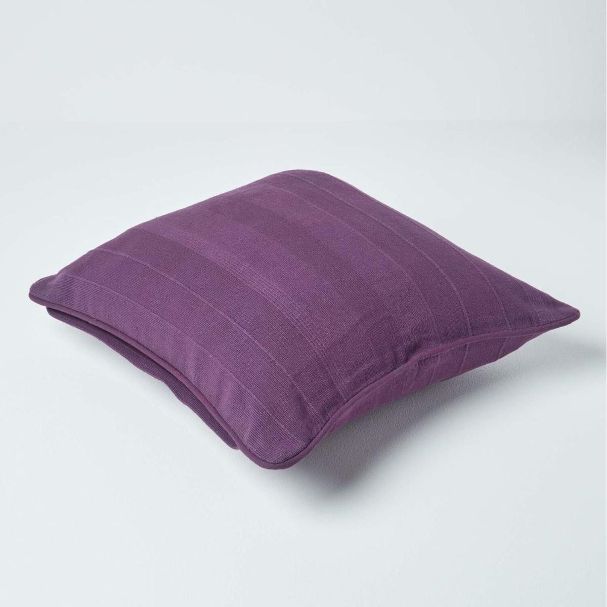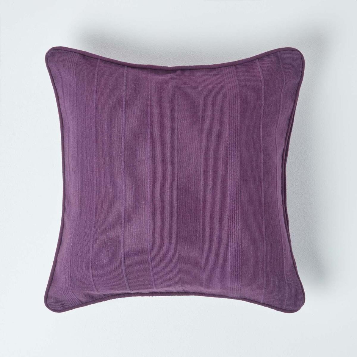 Homescapes Cotton Rajput Ribbed Cushion Cover - Purple / 45cm