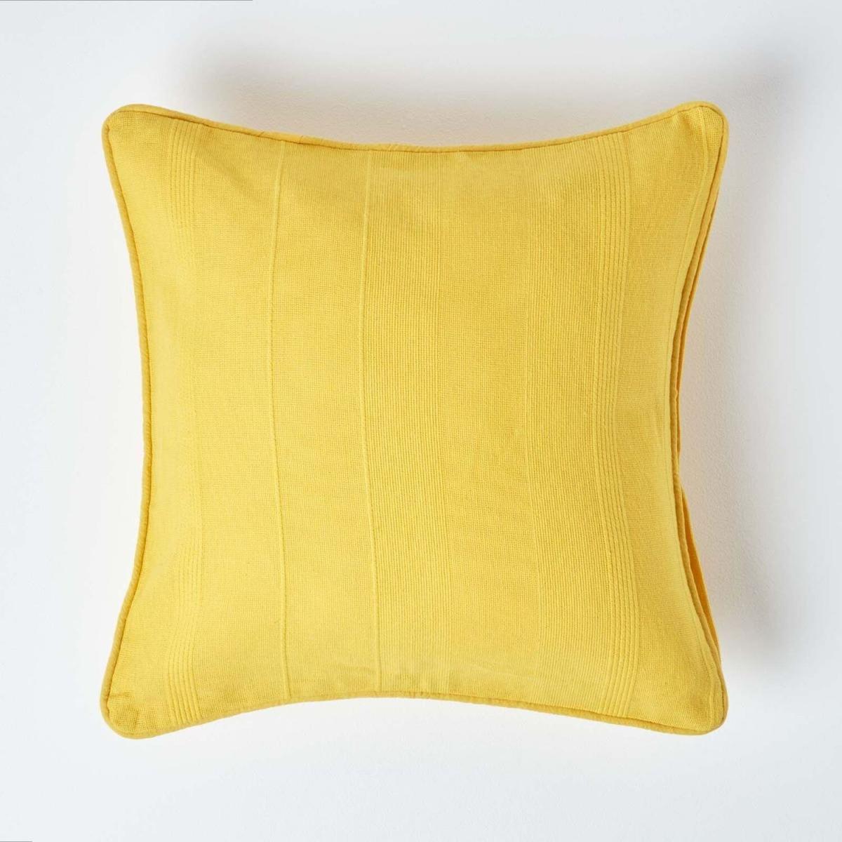 Homescapes Cotton Rajput Ribbed Cushion Cover - Yellow / 60cm