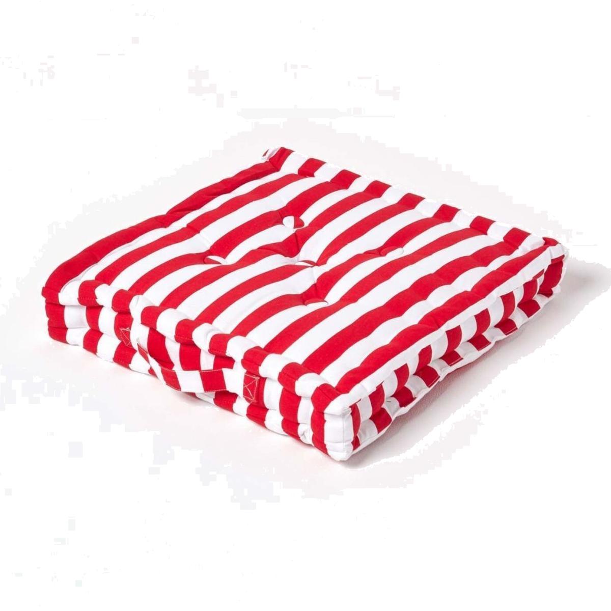 Homescapes Cotton Thick Stripe Floor Cushion - Red / 10cm