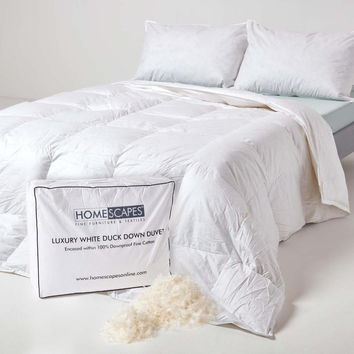 The Luxury White Duck Down Duvet from Homescapes is a premium quality choice, as duck down is widely regarded for luxury, quality and comfort. Each and every down feather used is RESPONSIBLE DOWN STANDARD certified, meaning that all feathers are ethically sourced, and tested for traceability and quality. To ensure that these down feathers stay in place, Homescapes duvets are encased inside 100 down proof cotton. This natural fabric is breathable and will help to keep you cool during the night and makes the duvet anti-dust mite and hypoallergenic. With baffle box construction, you are sure to remain a constant temperature throughout the night without any cold spots. Baffle box construction allows air to flow throughout the mattress, keeping you cool and comfortable all night long.