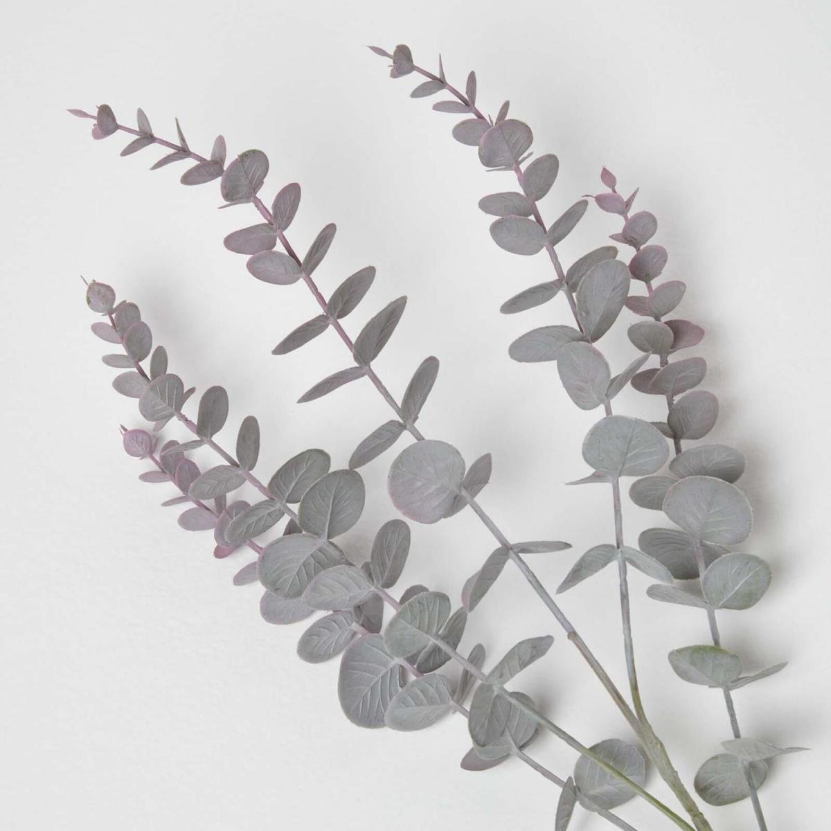 Silk-like polyester Eucalyptus spray by Homescapes. Crafted in a natural green colour and made to be botanically correct, these faux flowers have a wide range of uses. Shop the single stem artificial range and DIY custom bouquets, floral arrangements, centrepieces, garlands and more in a style that suits you. Suitable for birthdays, anniversaries, weddings, christenings, funerals, gifts, or even just every day decor, these long lasting stems can be reused time and time again as needed. Equipped with a luxuriously long stem, so the height can be adjusted as needed.
