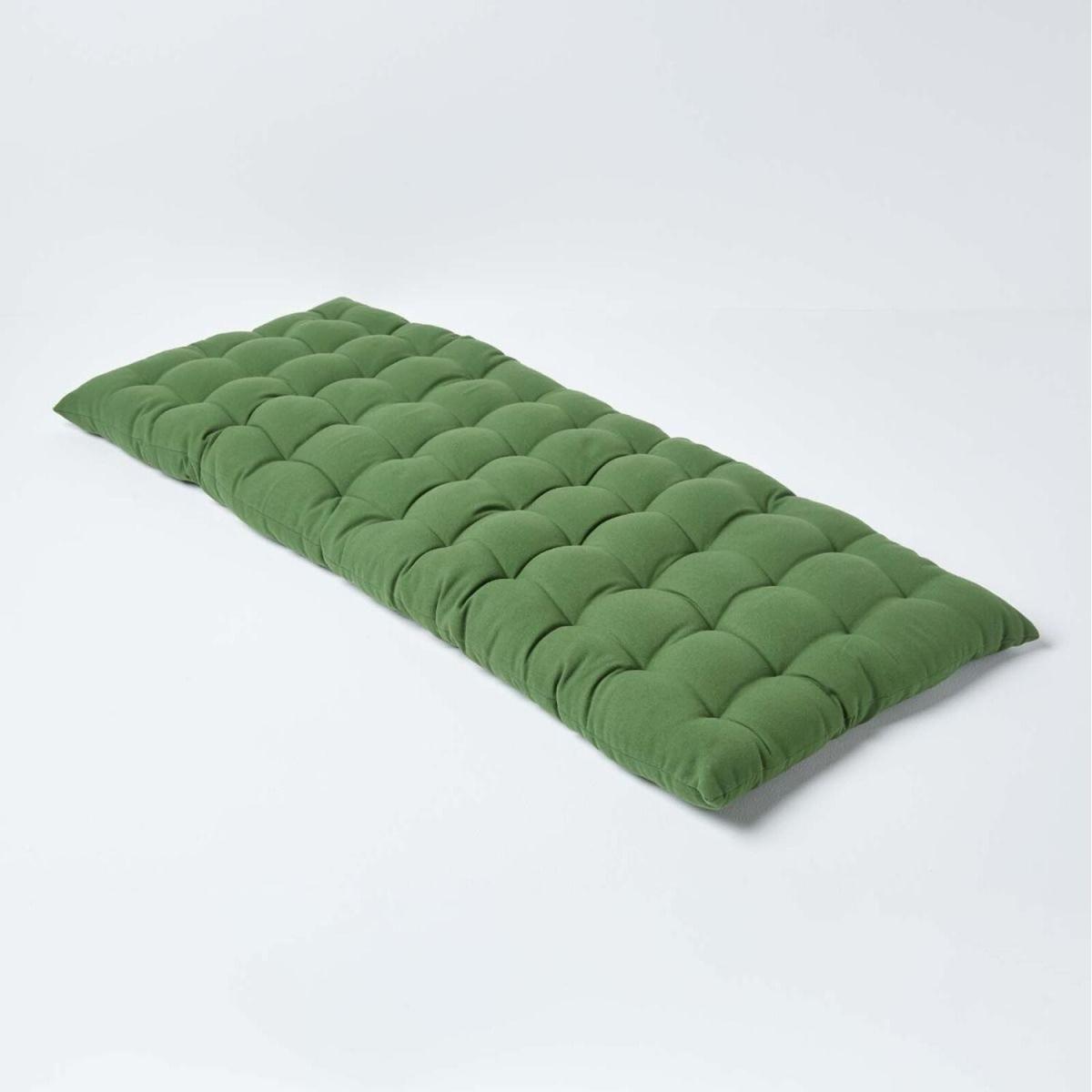 Add a burst of colour to your home and garden with this super soft and supportive dining and outdoor garden bench pad. Available in 2 and 3 seater bench sizes, this exclusive plain bench cushion is generously filled to provide lasting comfort. Homescapes bench seat pads are woven from durable 100 cotton, certified skin and planet friendly by OEKO-TEX. Perfect to use as a garden bench cushion or back rest, these multi-functional bench pads can be used outdoors on garden furniture or as garden floor cushions, as well as indoors in bay window seats and on dining benches. Washable at 40 degree, these garden cushions are not waterproof. Store indoors when not in use.