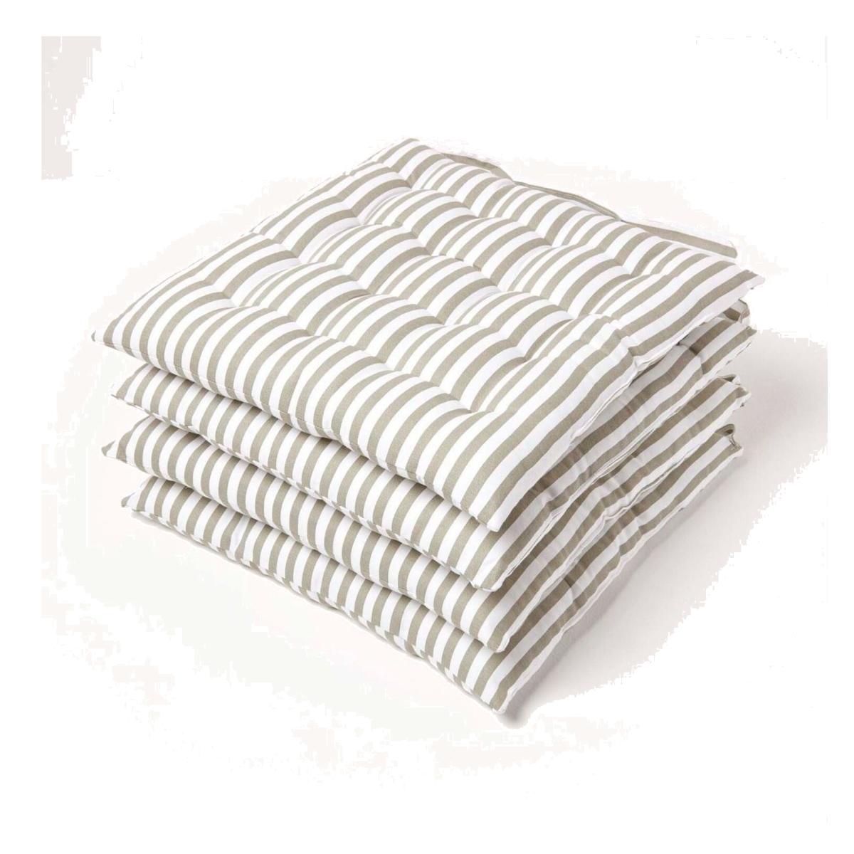 Super soft and supportive dining and kitchen seat pads that will add a burst of colour to your home and garden. Available in over 20 colours and designs including plain, striped, tartan and patterned, choose from individual seat cushions or opt for sets of 4 and 6, perfect for all the family! Homescapes seat pads are woven from durable 100 cotton and generously filled to provide lasting support and comfort. Featuring a carry handle for easy transportation, each cushion also has 2 ties at the back to ensure the seat remains secure when in use. Perfect to use as an outdoor or indoor seat cushion, they can be used on garden or dining room chairs, patio furniture or as colourful floor cushions both indoors and outside. Washable at 40. C, cushions are not waterproof, store indoors when not in use.