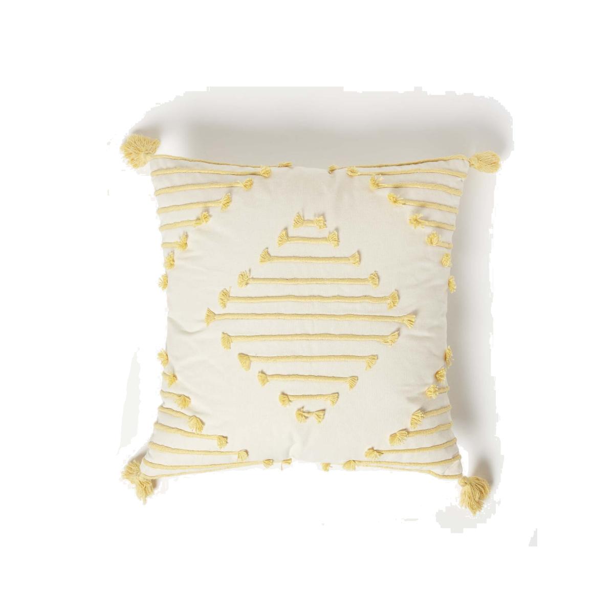 An exclusive collection of tufted cushions from Homescapes. Woven from 100 cotton these colourful throw cushions feature on-trend geometric style designs that are perfect for styling in the bedroom or on the sofa. Expertly handwoven from 100 cotton, these durable cushions feature chevron, geometric, sunshine and floral patterns that are tufted for a textured finish. In a range of muted colours, the collection includes white, cream and natural as well as greens, pinks and yellows. A great way to add colour and style to your home, tufted cushions measure 45 x 45 cm, feature a zip closure and can be mixed and matched to create the perfect cosy look.