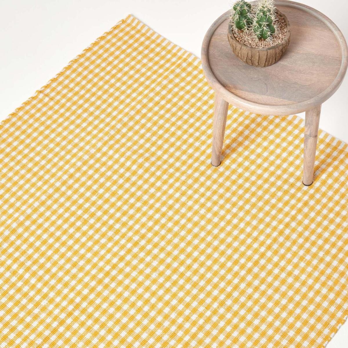 Bring in the chic country look with this classic hand woven gingham check rug available in five beautiful colours. Have been designed to coordinate with Homescapes gingham throws cushions and curtains but will work with many interior settings. It can be spot clean only and is ideal for children or rooms or spaces where you need a rug which could be easily cleaned. It's a high quality hand woven rug, which will serve you for a long time. Whether you are after a pastel, colour rich or shabby chic look, there is a colour to choose from. Available in 60 x90 cm, 70 x 120 cm, 66 x200 cm (runner) and 110 x 170 cm. Homescapes are well known for their high quality products, and this is yet another beautiful department store quality product brought to you directly from the manufacturer.