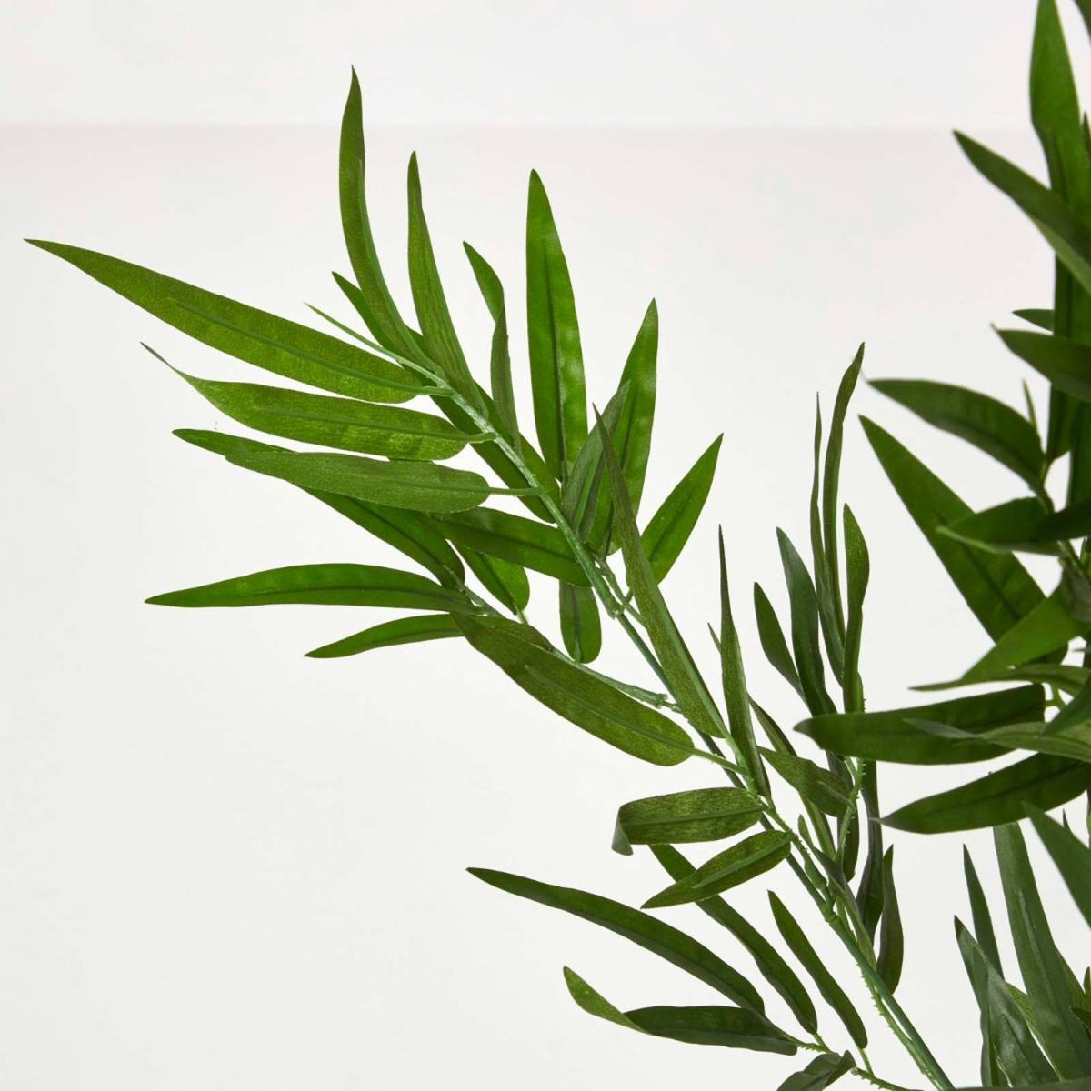 Bring an oriental touch to your interior décor with Homescapes Artificial Bamboo Tree, ideal for those who love the look of plants but may not have the time or optimum growth environment to keep houseplants looking lush. Made from a combination of synthetic materials, this low maintenance botanical decoration will keep on looking great all year round, despite harsh weather or low light levels. Standing in a plain black plant pot, this lifelike plant features real wooden bamboo stems and has trademark, long slim green leaves, resulting in a truly authentic looking tree. Standing at just under a metre (95 cm3 ft) tall, this medium-sized artificial bamboo is perfect for introducing a nature-inspired edge to your home, whether you choose to add some organic colour to your hallway, conservatory, bathroom or living room. Set in a black plant pot with an imitation moss layer, this design features three stalks and a generous amount of foliage, and can also be placed into a decorative container or vase to suit your interior décor. Thanks to a UV resistant coating, this plant can be used anywhere in your home without fear of sun-bleaching but we recommend that it is not placed outdoors. To keep your plant looking its best, wipe with a damp cloth. Measures approximately 95cm (3 ft) tall.
