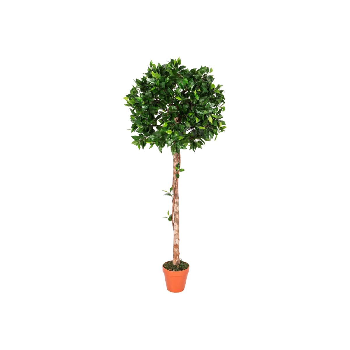 Perfect for the less green fingered gardener, this Green 4 ft Ficus Topiary Artificial Plant from Homescapes is just as beautiful as the real thing, but offers a low-cost, low-maintenance alternative to living houseplants. Showcasing ball-shaped foliage in a distinctive topiary style, this stunning replica Ficus tree has a versatile elegance that makes it ideal for the home, office or a special event. For a life-like appearance, this botanical decoration stands at 125 cm (4) tall and features a real wood trunk, wrapped with gently trailing vines. It comes supplied in an imitation moss-topped plant pot, so that you can simply shake out the leaves and put your plant to work bringing a natural look to your space, or place it in a decorative container to suit your interior décor. Thanks to a UV resistant coating, this plant can be used anywhere in your home without fear of sun-bleaching but we recommend that it is not placed outdoors. To keep your plant looking its best, wipe with a damp cloth. Measures approximately 125 cm (48) tall.