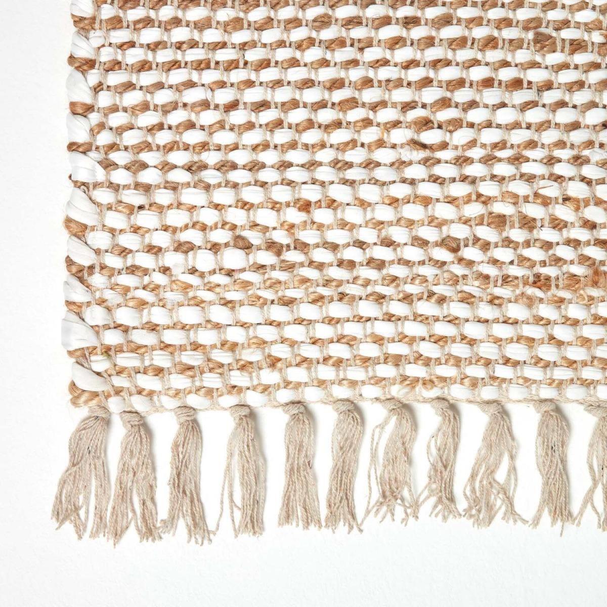 Featuring a chevron inspired design, the Horizon rug from Homescapes compliments contemporary interiors and adds a touch of style to your home. In grey and white, this neutral coloured rug can be easily introduced to your interiors and the zig zag pattern will add some fun style to your hallway or landing. Homescapes rugs and runners are woven by hand on traditional looms. The Horizon rug is made from hemp Chindi, a natural material that is soft to the touch and strong and durable, so you can use this rug in high traffic areas as it is suitable for daily use. As each rug is made by hand, every rug is completely unique so you may find that your rug varies slightly to the image provided.