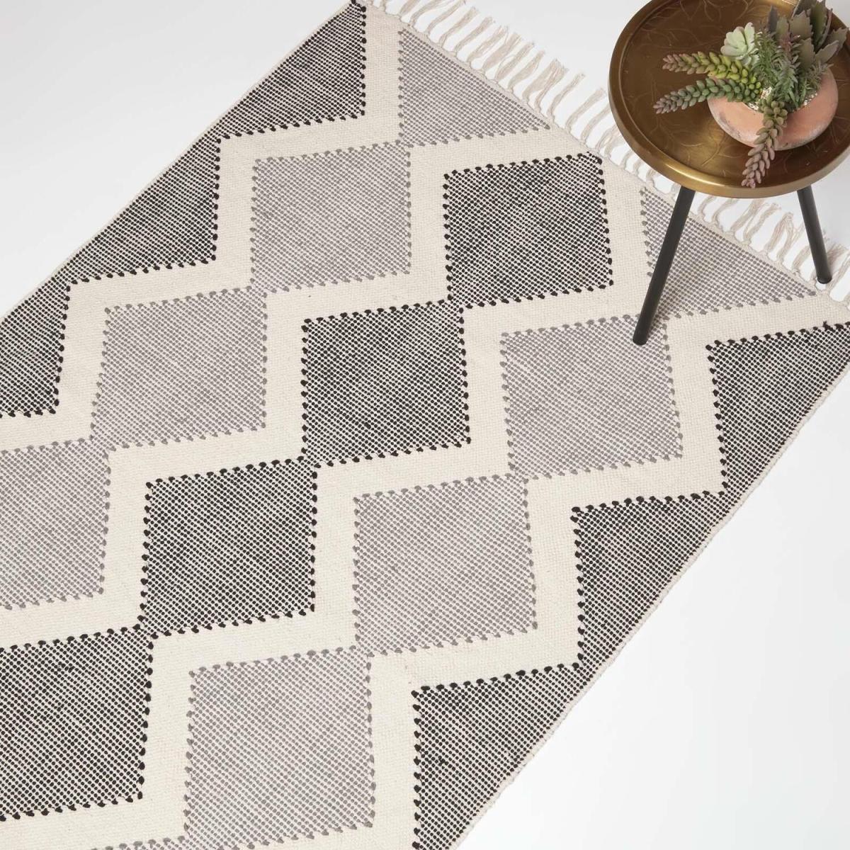 Step into luxury with Homescapes range of 100 cotton homeware. Designed to bring comfort and style to the home, this range of accessories can help to transform your room into a whole new space. From the handwoven chevron pattern to the quality of the yarn, each Malmo rug has been made with comfort and style in mind. With an on-trend geometric pattern, this colourful home accessory is perfect for heavy footfall areas, being both durable and decorative. Great for daily use, the Malmo rug comes in two sizes - 90 x 150 cm and 120 x 170 cm. Spot clean only.