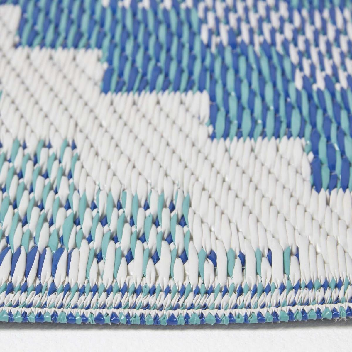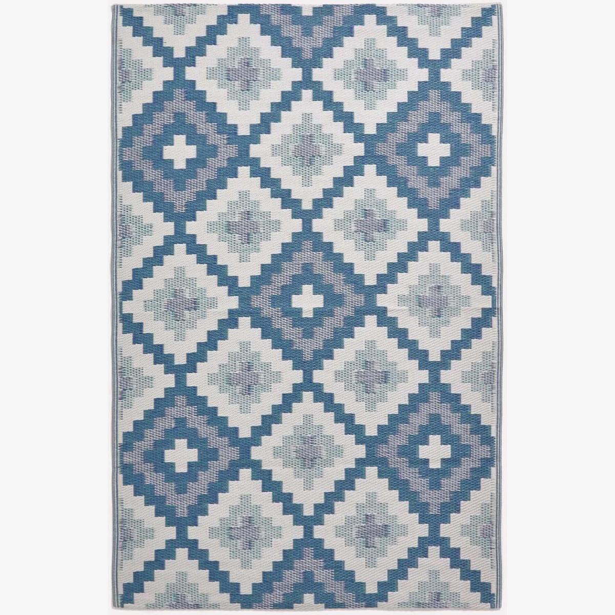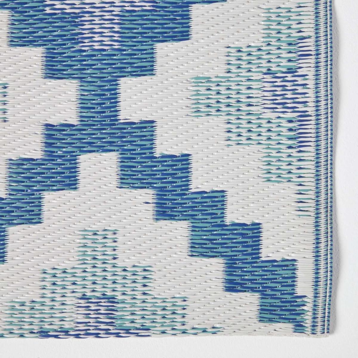 Add some style to your garden or patio area with this large garden rug from Homescapes. Featuring a striking blue geometric design, this decorative outdoor rug has a distinctive eye catching pattern and has been woven from 100 recycled polypropylene. An eco-friendly rug made from waste plastics, this large outdoor rug is lightweight and waterproof making it ideal for all weathers and spaces. Ideal for decorating patio, decking and slabbed areas, outdoor rugs are also perfect for picnicking, camping or even on the beach. Simple and easy to clean, simply sweep away dirt or gently wash with mild soapy water. Part of an exclusive range of garden rugs available in several striking designs. From Homescapes range of garden ornaments and accessories, this blue outdoor rug will brighten up your garden living areas. Available in 4 sizes, it is the perfect gift for any new homeowner or keen gardener. When you first open your rug, we recommend laying it front side down for a few hours for it to sit flat. Turn your rug regularly to ensure even wear and reduce pressure marks from furniture. If using indoors, you may wish to use an anti-slip mat underneath to prevent the rug from slipping out of place.