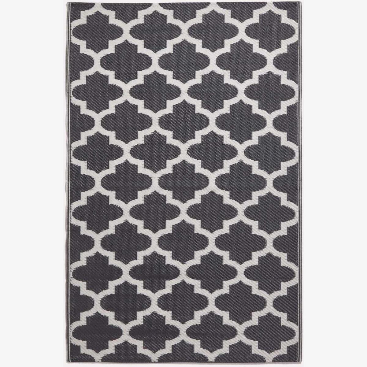 Add some style to your garden or patio area with this large garden rug from Homescapes. Featuring a contemporary black and white design, this decorative outdoor rug has a stylish, on-trend pattern and has been woven from 100 recycled polypropylene. An eco-friendly rug made from waste plastics, this large outdoor rug is lightweight and waterproof making it ideal for all weathers and spaces. Ideal for decorating patio, decking and slabbed areas, outdoor rugs are also perfect for picnicking, camping or even on the beach. Simple and easy to clean, simply sweep away dirt or gently wash with mild soapy water. Part of an exclusive range of garden rugs available in several striking designs. From Homescapes range of garden ornaments and accessories, this black outdoor rug will add style to your garden living areas. Available in 4 sizes, it is the perfect gift for any new homeowner or keen gardener. When you first open your rug, we recommend laying it front side down for a few hours for it to sit flat. Turn your rug regularly to ensure even wear and reduce pressure marks from furniture. If using indoors, you may wish to use an anti-slip mat underneath to prevent the rug from slipping out of place.
