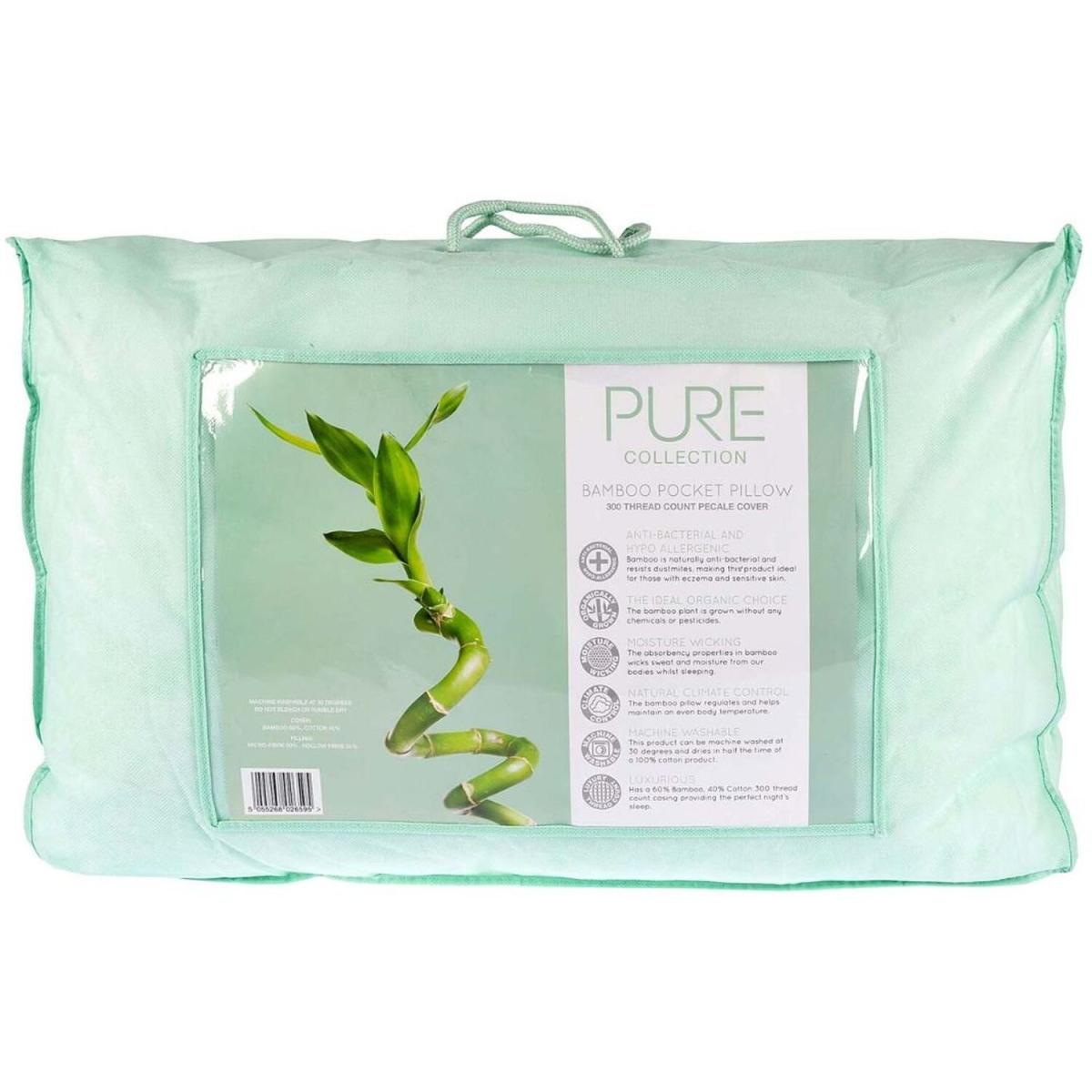 Our luxury, organic bamboo pillow has 24 filled pockets to provide complete support for your head and neck to ensure a comfortable sleeping position all night. All-Round Support For a great night's sleep, this pillow has 24 individual pockets that move with your body throughout your sleep to offer support where you need it. Each pocket is filled with a hypoallergenic, synthetic mixture of 50pc Microfibre and 50pc Hollowfibre to provide an incredible combination of down-like softness and firm loftiness. Chemical and Pesticide-Free Bamboo The external casing is made from an organic bamboo and cotton mixture fabric, 60pc and 40pc respectively, offering a 300 thread count fabric for a soft, anti-allergen and anti-dust mite sleeping surface that absorbs excess moisture, regulates temperature and is perfect for those with allergies or sensitive skin. To ensure that your pillow stays fresh and clean, it can be machine washed at 30. C at home. Air dry only. Do not bleach.