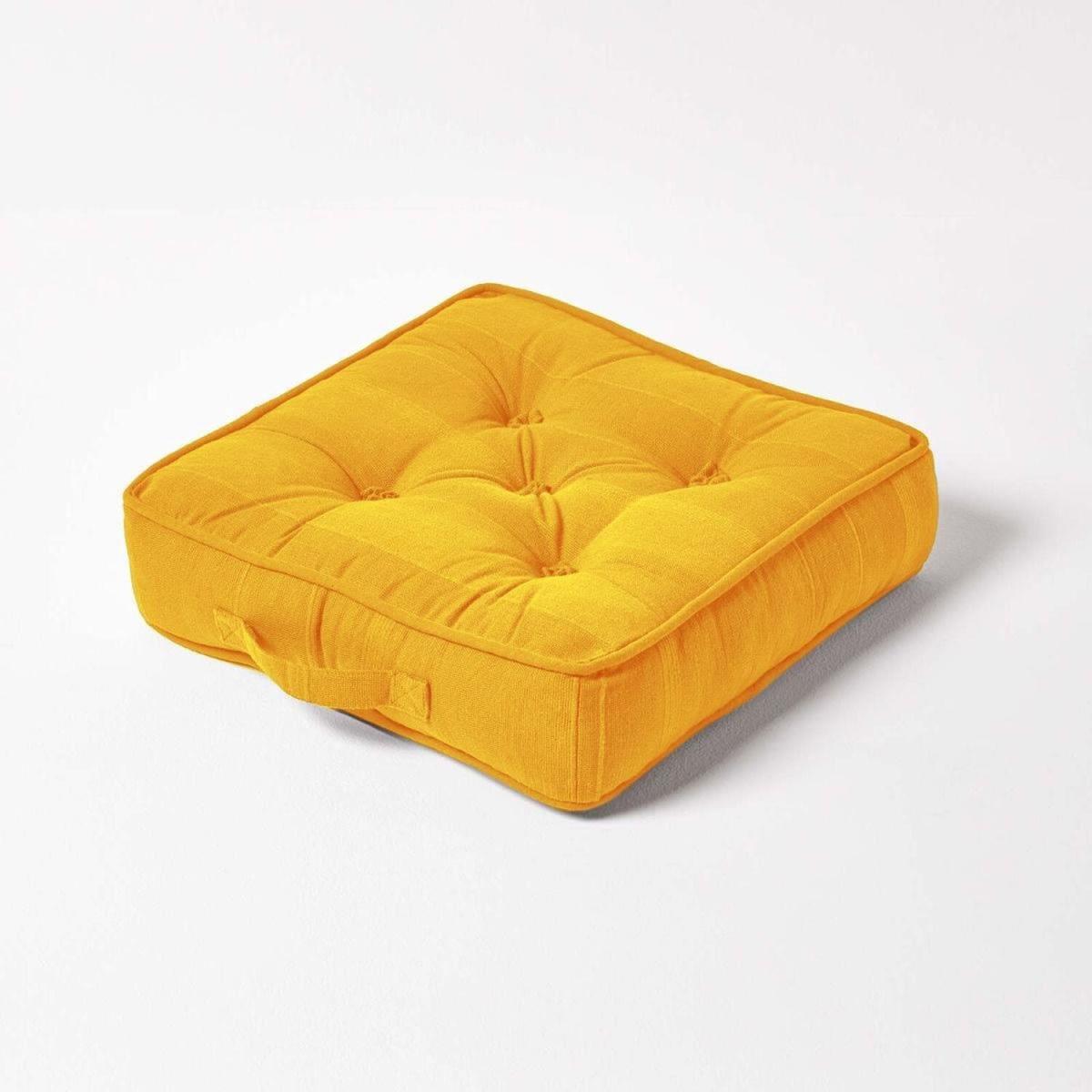 Homescapes Rajput Ribbed Cotton Floor Cushion - Mustard