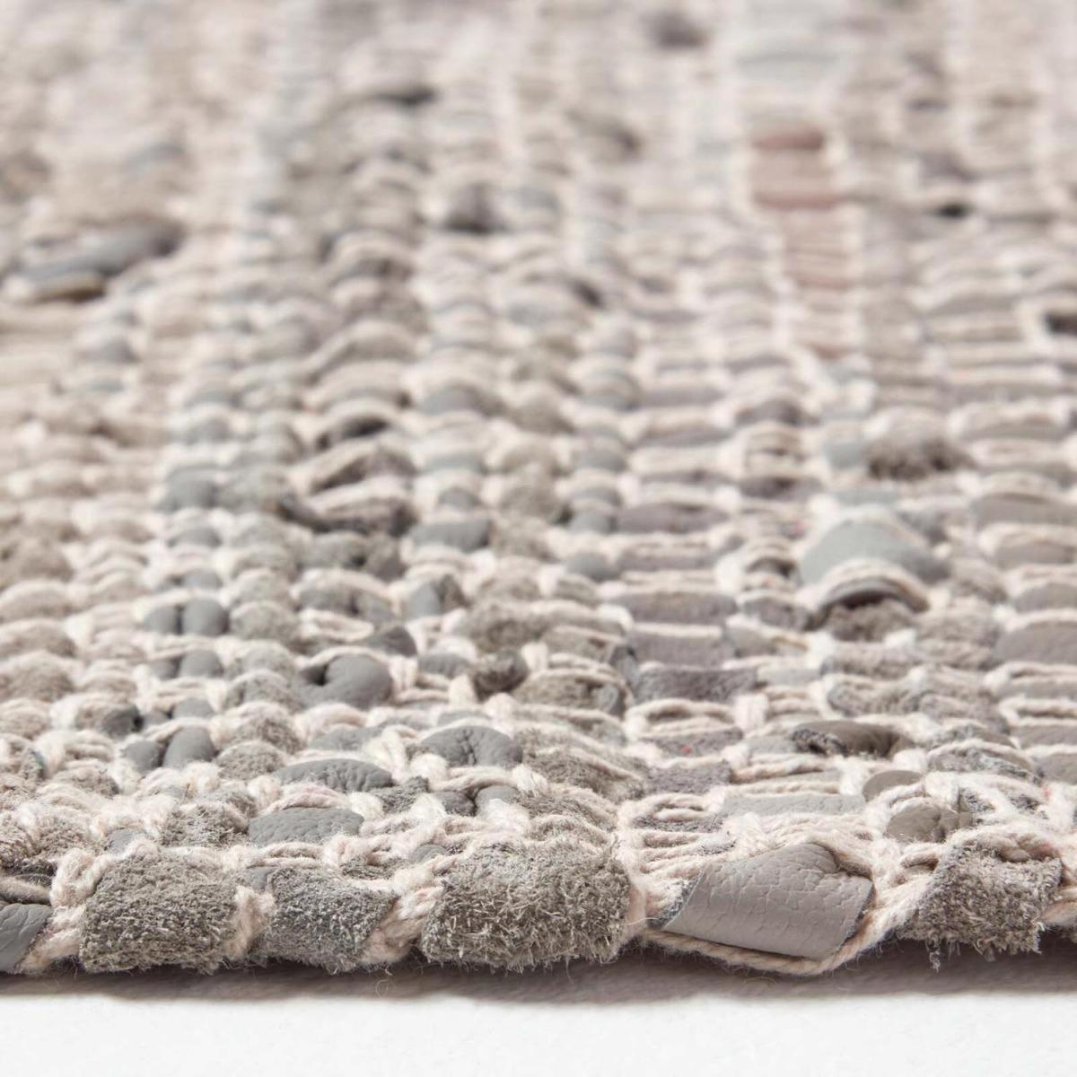 Update your home interiors with Homescapes recycled real leather rug. Featuring a diamond, ikat style design, this rug will add style and texture to any room in your home. Perfect for both contemporary and traditional style interiors, it has been handwoven using traditional techniques. This means that each rug is completely unique. This hardwearing eco-friendly rug is ideal for heavy footfall areas in your home such as your hallway, living room or bedroom. Choose from several sizes including 66 x 200 cm, 90 x 150 cm, 120 x 180 cm and 150 x 240 cm which is perfect to fill larger spaces. To care, spot clean only.