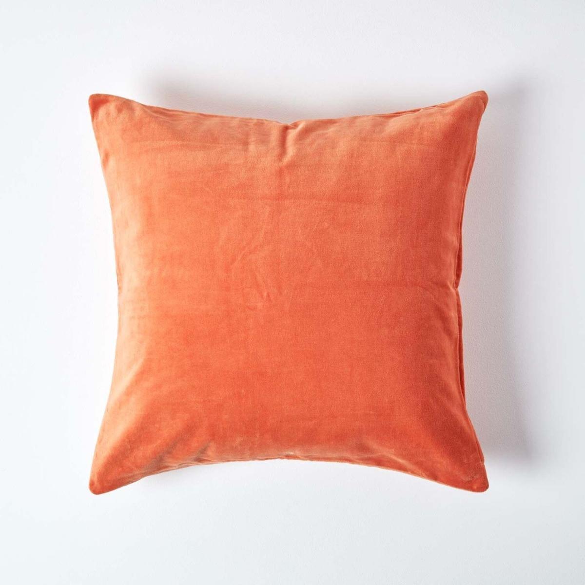 Luxury velvet cushion cover, woven from Cotton velvet to create a plush home accessory that feels super soft. Unlike polyester cotton that can sometimes look and feel cheap, our cotton velvet cushion cover is completely natural and creates a more subdued and subtle colour that will give your interiors a rich look. In stylish burnt orange, this velvet cushion cover will add a burst of colour to your home interiors.p. Available in three sizes, this velvet cushion cover is perfect for layering on your sofa or bed. An on-trend style, Homescapes' range of velvet cushion covers are available in 8 contemporary colours including burnt orange, red, pink, emerald green, mustard, grey and slate blue. Each one comes with a zip closure to make removing and inserting your cushion pad (sold separately) quick and easy. Part of Homescapes' collection of velvet home accessories, pair with the matching burnt orange velvet throw for a complete look. Machine washable at 40 degrees, wash on a gentle cycle with similar colours.p