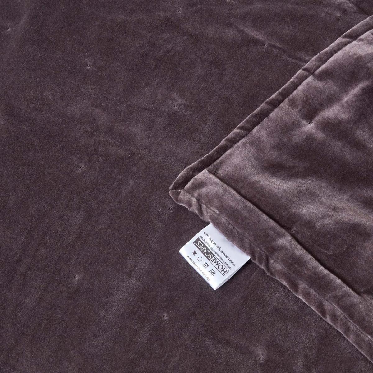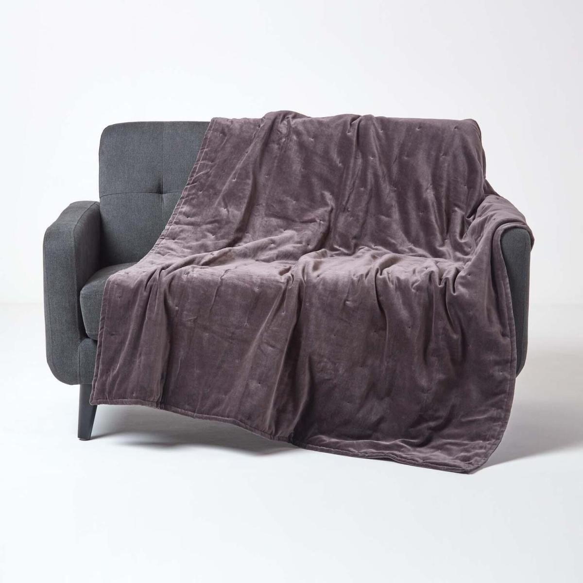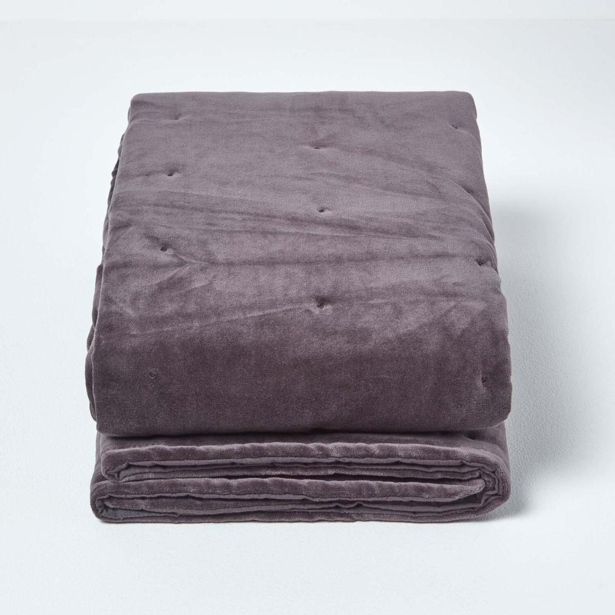 Homescapes Velvet Quilted Throw with Stitch - Dark Grey / 200cm