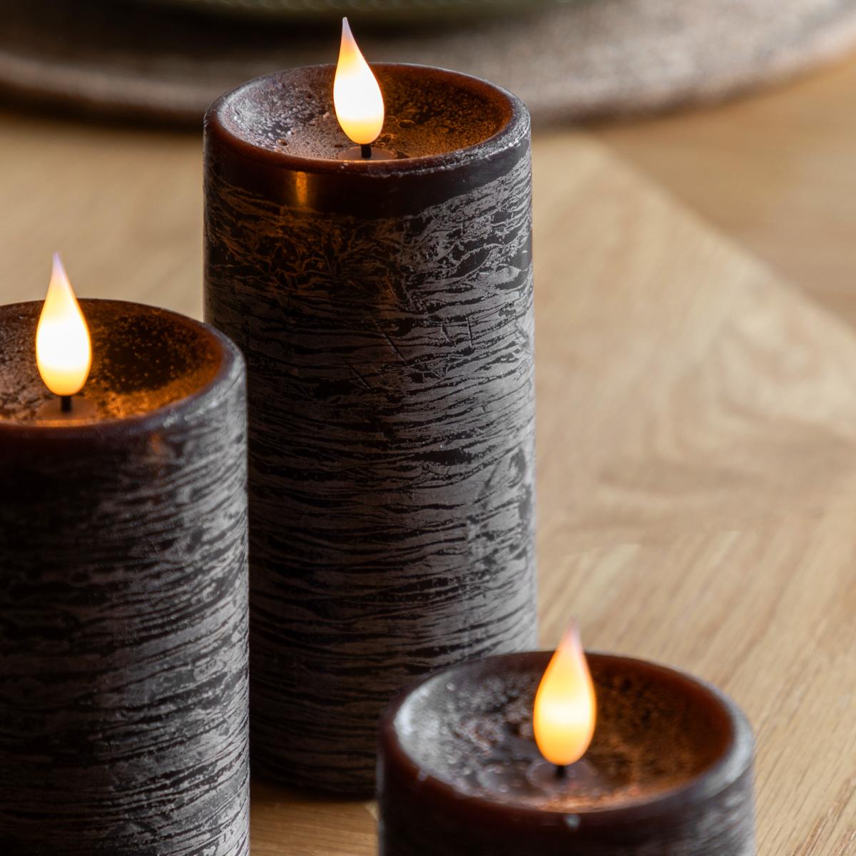 Get the feel of a real candles without any of the fuss. A classic trio of candles in a warm mocha tone made to create a cosy feeling in any room. With LED candles you have a candlelight glow completely worry free.