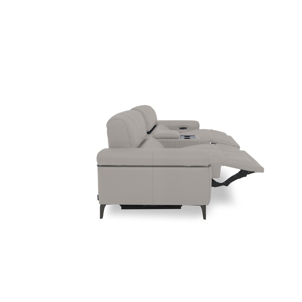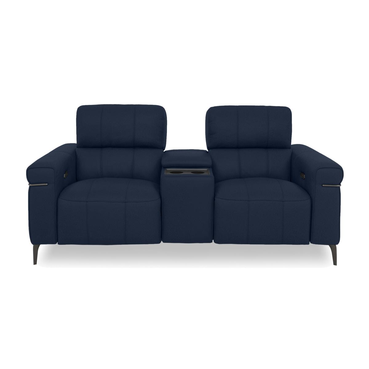 Turn your living room into the most stylish of in-home cinemas with sofas, chairs and footstools from our Homestage range. The collection includes stunning media sofas and armchairs that connect via Bluetooth to your TV or phone and have surround sound speakers hidden in the incredibly comfortable cushioning for the next level in 4. D entertainment. And with power recliners with independently-moving backrests and footrests, perfect-position power headrests, built-in massage units and sprung seats and backs, the comfort is every bit as enthralling. Made in Italy and available in a wide choice of soft fabric and 100% leather upholstery options, the Homestage range is a Furniture Village exclusive. Connect to your TV or phone, enjoy surround sound and immerse yourself in a 4. D cinematic experience with this very stylish power recliner sofa. Made in Italy. Why you’ll love it Cinema-style entertainment meets contemporary Italian style in this media sofa. Bluetooth connection to your TV or phone for an immersive 4. D experience. Surround sound speakers are embedded into sofa cushioning. With wireless, USB and USB-C charging. Media console has entertainment and comfort controls, cup holders and storage space. Power recliners feature independent backrest and footrest motion. Perfect-position headrests mean perfect comfort, every time. Built-in massage feature for the ultimate in sofa relaxation. Sprung seats and back for superbly balanced support wherever you sit. Fabric upholstery with linear stitching in a choice of on-trend colours. Stiletto-style metal legs with a high-shine nickel-plated finish in black. Matching metal arm trim. Also available with 100% leather upholstery for even more cool modern style. Handmade in Italy. A Furniture Village exclusive. This 2-seater power recliner media sofa is part of our Homestage range. What you need to know Medium comfort level. Seat suspension: no-sag springs. Seat cushioning: foam and inner coil spring. Cushioning is fixed. Back suspension: rubber webbing. Back cushioning: foam and loose fibre. Cushioning is fixed. Arm cushioning: foam and fibre. Please allow time for new recliners to ease. Minor gaps are necessary to ensure ease of recliner motion and may be exaggerated depending on floor type. Clean regularly using a soft brush or vacuum with the curtain attachment. Deal with any spills promptly. Professional cleaning advised for oil- and grease-based stains. Please read our upholstery care guide for more advice.
