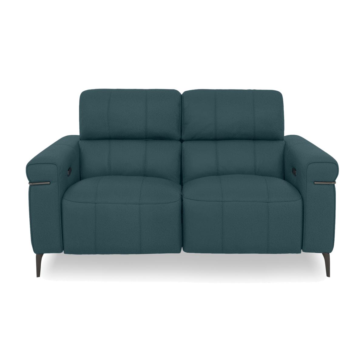 Turn your living room into the most stylish of in-home cinemas with sofas, chairs and footstools from our Homestage range. The collection includes stunning media sofas and armchairs that connect via Bluetooth to your TV or phone and have surround sound speakers hidden in the incredibly comfortable cushioning for the next level in 4. D entertainment. And with power recliners with independently-moving backrests and footrests, perfect-position power headrests and sprung seats and backs, the comfort is every bit as enthralling. Available in a wide choice of soft fabric and 100% leather upholstery options, the Homestage range is a Furniture Village exclusive. Comfort is second to none thanks to this sofa’s power recliners, perfect-position power headrests and sprung seats and back. Why you’ll love it Contemporary design ensures you’ll be relaxing in style. Power recliners with independent backrest and footrest motion. Perfect-position headrests mean perfect comfort, every time. Sprung seats and back for superbly balanced support wherever you sit. Fabric upholstery with linear stitching in a choice of on-trend colours. Stiletto-style metal legs with a high-shine nickel-plated finish in black. Matching metal arm trim. Also available with 100% leather upholstery for even more cool modern style. A Furniture Village exclusive. This 2-seater power recliner sofa is part of our Homestage range. What you need to know Medium comfort level. Seat suspension: no-sag springs. Seat cushioning: foam and inner coil spring. Cushioning is fixed. Back suspension: rubber webbing. Back cushioning: foam and loose fibre. Cushioning is fixed. Arm cushioning: foam and fibre. Please allow time for new recliners to ease. Minor gaps are necessary to ensure ease of recliner motion and may be exaggerated depending on floor type. Clean regularly using a soft brush or vacuum with the curtain attachment. Deal with any spills promptly. Professional cleaning advised for oil- and grease-based stains. Please read our upholstery care guide for more advice. Item code: HOMS2SP-LUX-042
