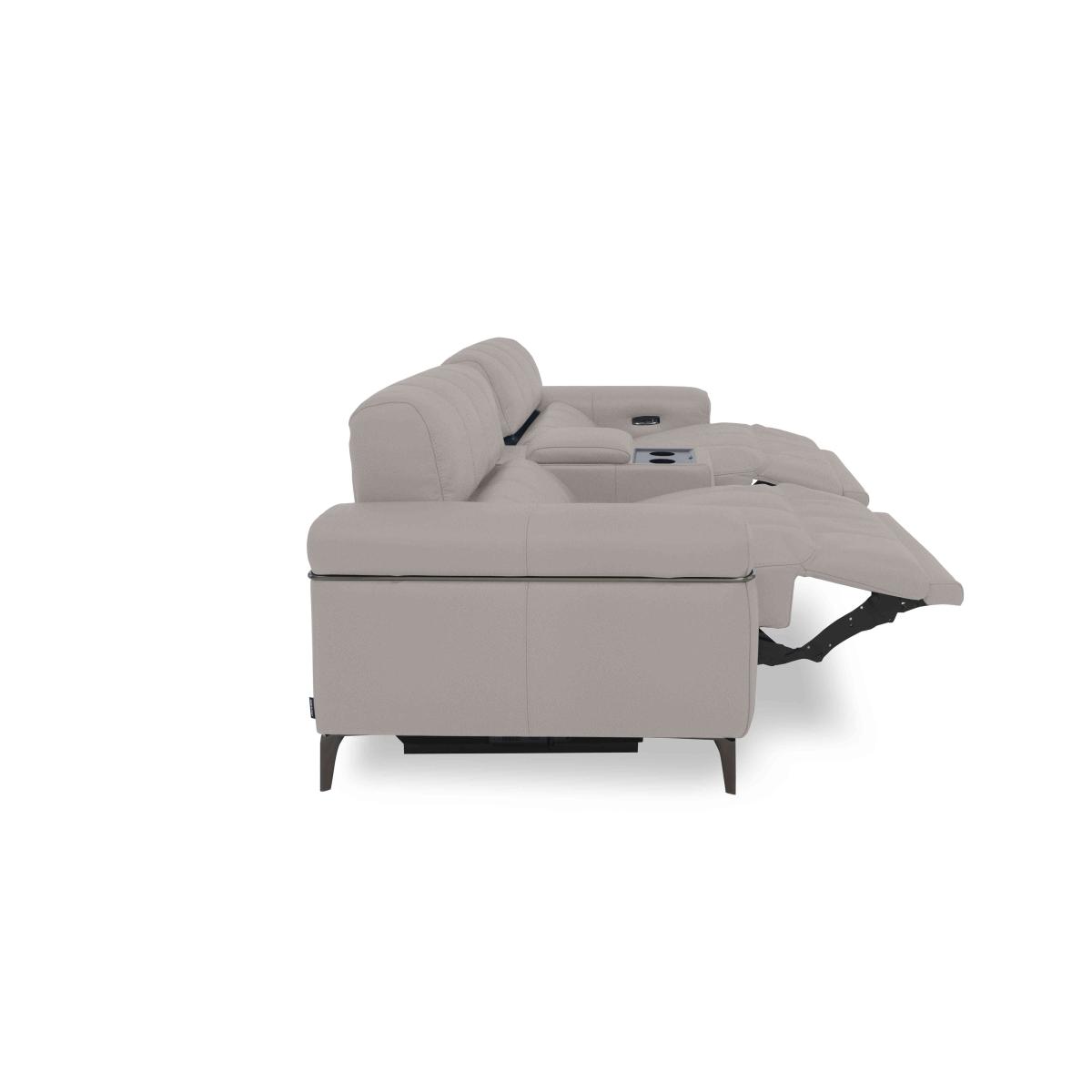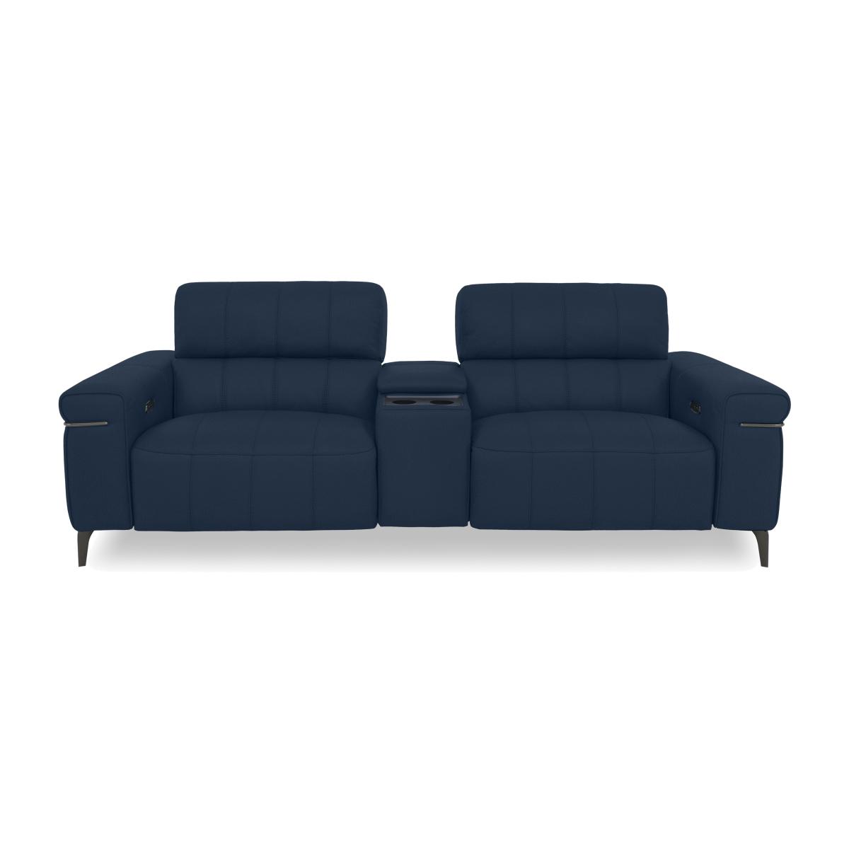 Turn your living room into the most stylish of in-home cinemas with sofas, chairs and footstools from our Homestage range. The collection includes stunning media sofas and armchairs that connect via Bluetooth to your TV or phone and have surround sound speakers hidden in the incredibly comfortable cushioning for the next level in 4. D entertainment. And with power recliners with independently-moving backrests and footrests, perfect-position power headrests, built-in massage units and sprung seats and backs, the comfort is every bit as enthralling. Made in Italy and available in a wide choice of soft fabric and 100% leather upholstery options, the Homestage range is a Furniture Village exclusive. Offering a host of immersive cinematic audio and visual features including Bluetooth and surround sound, this fabulous Italian media sofa takes top billing in any living space. Why you’ll love it Cinema-style entertainment meets contemporary Italian style in this media sofa. Bluetooth connection to your TV or phone for an immersive 4. D experience. Surround sound speakers are embedded into sofa cushioning. With wireless, USB and USB-C charging. Media console has entertainment and comfort controls, cup holders and storage space. Power recliners feature independent backrest and footrest motion. Perfect-position headrests mean perfect comfort, every time. Built-in massage feature for the ultimate in sofa relaxation. Sprung seats and back for superbly balanced support wherever you sit. Fabric upholstery with linear stitching in a choice of on-trend colours. Stiletto-style metal legs with a high-shine nickel-plated finish in black. Matching metal arm trim. Also available with 100% leather upholstery for even more cool modern style. Handmade in Italy. A Furniture Village exclusive. This 3-seater power recliner media sofa is part of our Homestage range. What you need to know Medium comfort level. Seat suspension: no-sag springs. Seat cushioning: foam and inner coil spring. Cushioning is fixed. Back suspension: rubber webbing. Back cushioning: foam and loose fibre. Cushioning is fixed. Arm cushioning: foam and fibre. Please allow time for new recliners to ease. Minor gaps are necessary to ensure ease of recliner motion and may be exaggerated depending on floor type. Clean regularly using a soft brush or vacuum with the curtain attachment. Deal with any spills promptly. Professional cleaning advised for oil- and grease-based stains. Please read our upholstery care guide for more advice.