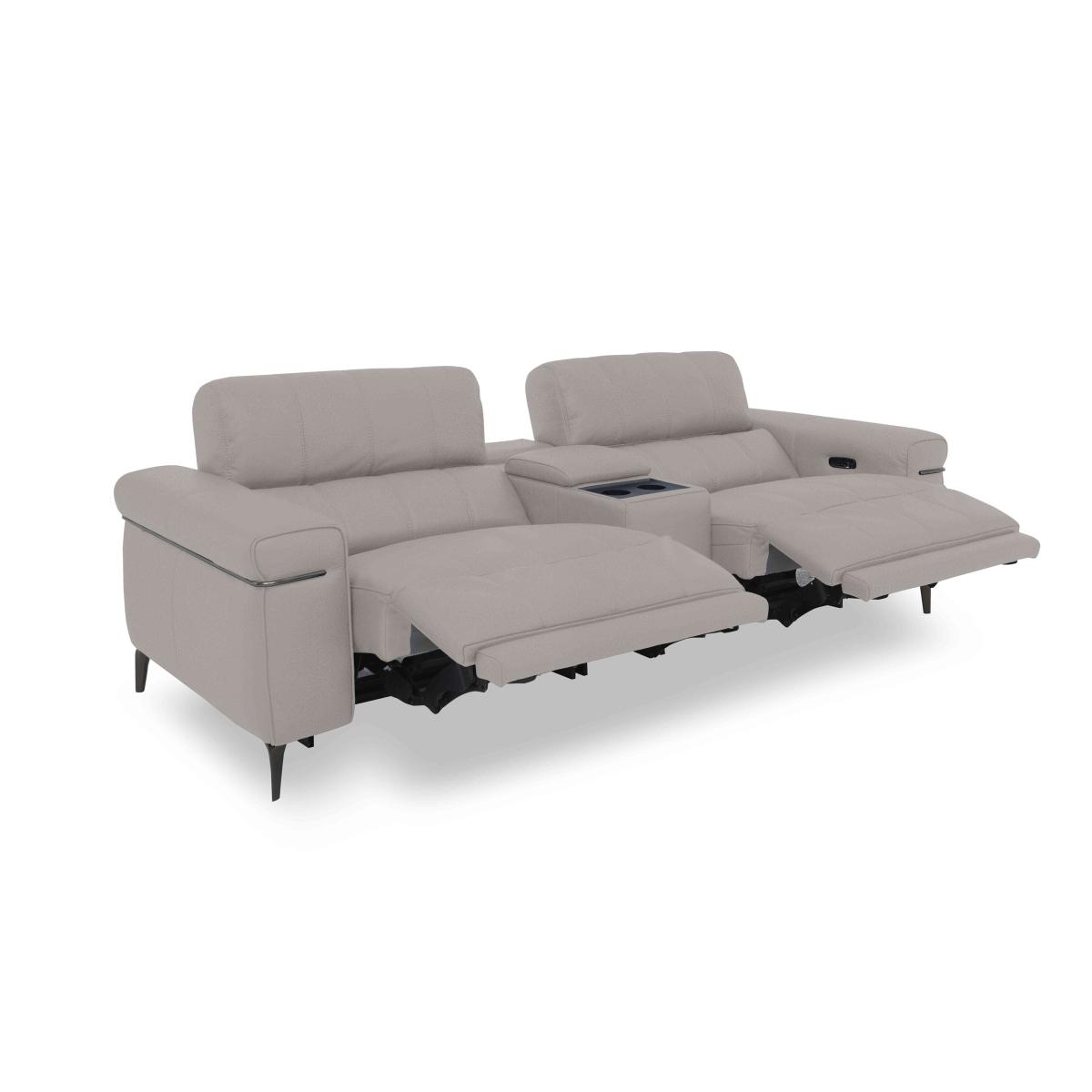 Turn your living room into the most stylish of in-home cinemas with sofas, chairs and footstools from our Homestage range. The collection includes stunning media sofas and armchairs that connect via Bluetooth to your TV or phone and have surround sound speakers hidden in the incredibly comfortable cushioning for the next level in 4. D entertainment. And with power recliners with independently-moving backrests and footrests, perfect-position power headrests and sprung seats and backs, the comfort is every bit as enthralling. Available in a wide choice of soft fabric and 100% leather upholstery options, the Homestage range is a Furniture Village exclusive. Offering a host of immersive cinematic audio and visual features including Bluetooth and surround sound, this fabulous media sofa takes top billing in any living space. Why you’ll love it Cinema-style entertainment meets contemporary style in this media sofa. Bluetooth connection to your TV or phone for an immersive 4. D experience. Surround sound speakers are embedded into sofa cushioning. With wireless, USB and USB-C charging. Media console has entertainment and comfort controls, cup holders and storage space. Power recliners feature independent backrest and footrest motion. Perfect-position headrests mean perfect comfort, every time. Sprung seats and back for superbly balanced support wherever you sit. Fabric upholstery with linear stitching in a choice of on-trend colours. Stiletto-style metal legs with a high-shine nickel-plated finish in black. Matching metal arm trim. Also available with 100% leather upholstery for even more cool modern style. A Furniture Village exclusive. This 3-seater power recliner media sofa is part of our Homestage range. What you need to know Medium comfort level. Seat suspension: no-sag springs. Seat cushioning: foam and inner coil spring. Cushioning is fixed. Back suspension: rubber webbing. Back cushioning: foam and loose fibre. Cushioning is fixed. Arm cushioning: foam and fibre. Please allow time for new recliners to ease. Minor gaps are necessary to ensure ease of recliner motion and may be exaggerated depending on floor type. Clean regularly using a soft brush or vacuum with the curtain attachment. Deal with any spills promptly. Professional cleaning advised for oil- and grease-based stains. Please read our upholstery care guide for more advice. Item code: HOMSM3SPLUX-001