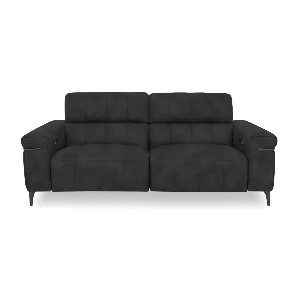 Turn your living room into the most stylish of in-home cinemas with sofas, chairs and footstools from our Homestage range. The collection includes stunning media sofas and armchairs that connect via Bluetooth to your TV or phone and have surround sound speakers hidden in the incredibly comfortable cushioning for the next level in 4. D entertainment. And with power recliners with independently-moving backrests and footrests, perfect-position power headrests and sprung seats and backs, the comfort is every bit as enthralling. Available in a wide choice of soft fabric and 100% leather upholstery options, the Homestage range is a Furniture Village exclusive. With power recliners, power headrests, sprung seats and bold contemporary style, you’ll love how this fabulous three-seater sofa looks and feels. Why you’ll love it Contemporary design ensures you’ll be relaxing in style. Power recliners with independent backrest and footrest motion. Perfect-position headrests mean perfect comfort, every time. Sprung seats and back for superbly balanced support wherever you sit. Fabric upholstery with linear stitching in a choice of on-trend colours. Stiletto-style metal legs with a high-shine nickel-plated finish in black. Matching metal arm trim. Also available with 100% leather upholstery for even more cool modern style. A Furniture Village exclusive. This 3-seater power recliner sofa is part of our Homestage range. What you need to know Medium comfort level. Seat suspension: no-sag springs. Seat cushioning: foam and inner coil spring. Cushioning is fixed. Back suspension: rubber webbing. Back cushioning: foam and loose fibre. Cushioning is fixed. Arm cushioning: foam and fibre. Please allow time for new recliners to ease. Minor gaps are necessary to ensure ease of recliner motion and may be exaggerated depending on floor type. Clean regularly using a soft brush or vacuum with the curtain attachment. Deal with any spills promptly. Professional cleaning advised for oil- and grease-based stains. Please read our upholstery care guide for more advice. Item code: HOMS3SP-LUX-049