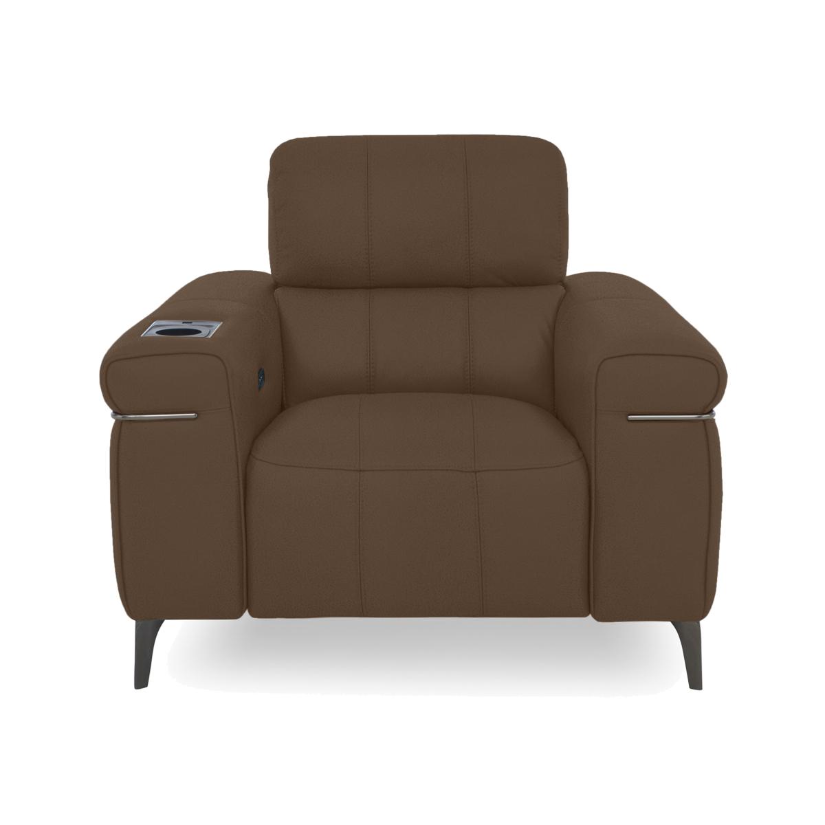 Turn your living room into the most stylish of in-home cinemas with sofas, chairs and footstools from our Homestage range. The collection includes stunning media sofas and armchairs that connect via Bluetooth to your TV or phone and have surround sound speakers hidden in the incredibly comfortable cushioning for the next level in 4. D entertainment. And with power recliners with independently-moving backrests and footrests, perfect-position power headrests, built-in massage units and sprung seats and backs, the comfort is every bit as enthralling. Made in Italy and available in a wide choice of soft fabric and 100% leather upholstery options, the Homestage range is a Furniture Village exclusive. More than a stylish armchair, this media chair brings the cinema to your living room. Connect it to your phone or TV and enjoy an immersive audio visual experience. Why you’ll love it Cinema-style entertainment meets contemporary Italian style in this media chair. Bluetooth connection to your TV or phone for an immersive 4. D experience. Surround sound speakers are embedded into cushioning. With wireless, USB and USB-C charging. Power recliner features independent backrest and footrest motion. Perfect-position headrest means perfect comfort, every time. Built-in massage feature for the ultimate in relaxation. Sprung seat and back for superbly balanced support wherever you sit. Fabric upholstery with linear stitching in a choice of on-trend colours. Stiletto-style metal legs with a high-shine nickel-plated finish in black. Matching metal arm trim. Also available with 100% leather upholstery for even more cool modern style. Handmade in Italy. A Furniture Village exclusive. This power recliner media chair is part of our Homestage range. What you need to know Medium comfort level. Seat suspension: no-sag springs. Seat cushioning: foam and inner coil spring. Cushioning is fixed. Back suspension: rubber webbing. Back cushioning: foam and loose fibre. Cushioning is fixed. Arm cushioning: foam and fibre. Please allow time for new recliners to ease. Minor gaps are necessary to ensure ease of recliner motion and may be exaggerated depending on floor type. Clean regularly using a soft brush or vacuum with the curtain attachment. Deal with any spills promptly. Professional cleaning advised for oil- and grease-based stains. Please read our upholstery care guide for more advice.