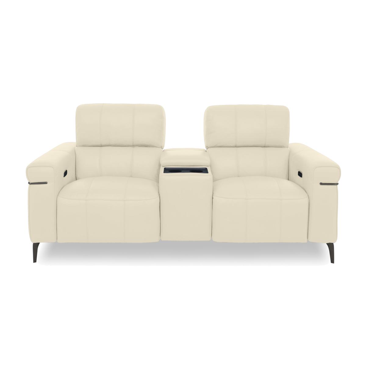 Turn your living room into the most stylish of in-home cinemas with sofas, chairs and footstools from our Homestage range. The collection includes stunning media sofas and armchairs that connect via Bluetooth to your TV or phone and have surround sound speakers hidden in the incredibly comfortable cushioning for the next level in 4. D entertainment. And with power recliners with independently-moving backrests and footrests, perfect-position power headrests and sprung seats and backs, the comfort is every bit as enthralling. Available in a wide choice of soft fabric and 100% leather upholstery options, the Homestage range is a Furniture Village exclusive. As well as fabulous style in 100% leather and power recliners and headrests, this two-seater media sofa delivers a 4. D cinematic experience with Bluetooth and surround sound. Why you’ll love it Cinema-style entertainment meets contemporary style in this media sofa. Bluetooth connection to your TV or phone for an immersive 4. D experience. Surround sound speakers are embedded into sofa cushioning. With wireless, USB and USB-C charging. Media console has entertainment and comfort controls, cup holders and storage space. Power recliners feature independent backrest and footrest motion. Perfect-position headrests mean perfect comfort, every time. Sprung seats and back for superbly balanced support wherever you sit. 100% leather upholstery with linear stitching in a huge choice of on-trend colours. Stiletto-style metal legs with a high-shine nickel-plated finish in black. Matching metal arm trim. A Furniture Village exclusive. This 2-seater leather power recliner media sofa is part of our Homestage range. What you need to know Medium comfort level. Seat suspension: no-sag springs. Seat cushioning: foam and inner coil spring. Cushioning is fixed. Back suspension: rubber webbing. Back cushioning: foam and loose fibre. Cushioning is fixed. Arm cushioning: foam and fibre. Please allow time for new recliners to ease. Minor gaps are necessary to ensure ease of recliner motion and may be exaggerated depending on floor type. Leather has unique marks and characteristics with variation in colour and texture. Leather softens with use. Smoothing the tops of leather cushions prevents signs of visual comfort. Please read our upholstery care guide for more advice. Item code: HOMSM2SPNW-011