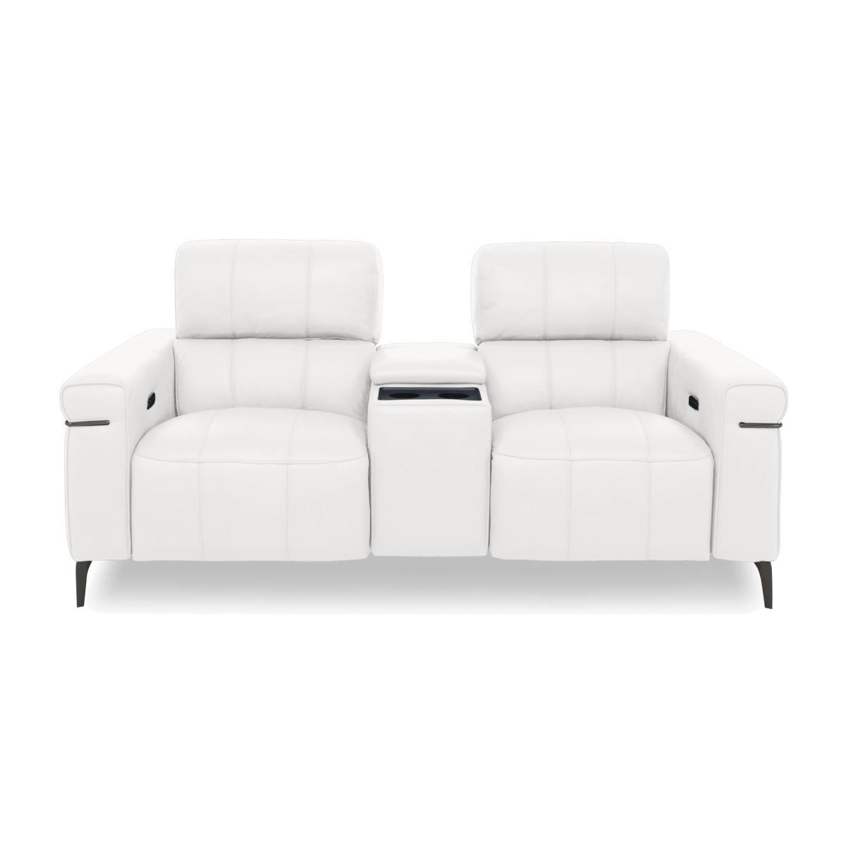 Turn your living room into the most stylish of in-home cinemas with sofas, chairs and footstools from our Homestage range. The collection includes stunning media sofas and armchairs that connect via Bluetooth to your TV or phone and have surround sound speakers hidden in the incredibly comfortable cushioning for the next level in 4. D entertainment. And with power recliners with independently-moving backrests and footrests, perfect-position power headrests, built-in massage units and sprung seats and backs, the comfort is every bit as enthralling. Made in Italy and available in a wide choice of soft fabric and 100% leather upholstery options, the Homestage range is a Furniture Village exclusive. As well as fabulous Italian style in 100% leather and power recliners and headrests, this two-seater media sofa delivers a 4. D cinematic experience with Bluetooth and surround sound. Why you’ll love it Cinema-style entertainment meets contemporary Italian style in this media sofa. Bluetooth connection to your TV or phone for an immersive 4. D experience. Surround sound speakers are embedded into sofa cushioning. With wireless, USB and USB-C charging. Media console has entertainment and comfort controls, cup holders and storage space. Power recliners feature independent backrest and footrest motion. Perfect-position headrests mean perfect comfort, every time. Built-in massage feature for the ultimate in sofa relaxation. Sprung seats and back for superbly balanced support wherever you sit. 100% leather upholstery with linear stitching in a huge choice of on-trend colours. Stiletto-style metal legs with a high-shine nickel-plated finish in black. Matching metal arm trim. Handmade in Italy. A Furniture Village exclusive. This 2-seater leather power recliner media sofa is part of our Homestage range. What you need to know Medium comfort level. Seat suspension: no-sag springs. Seat cushioning: foam and inner coil spring. Cushioning is fixed. Back suspension: rubber webbing. Back cushioning: foam and loose fibre. Cushioning is fixed. Arm cushioning: foam and fibre. Please allow time for new recliners to ease. Minor gaps are necessary to ensure ease of recliner motion and may be exaggerated depending on floor type. Leather has unique marks and characteristics with variation in colour and texture. Leather softens with use. Smoothing the tops of leather cushions prevents signs of visual comfort. Please read our upholstery care guide for more advice.