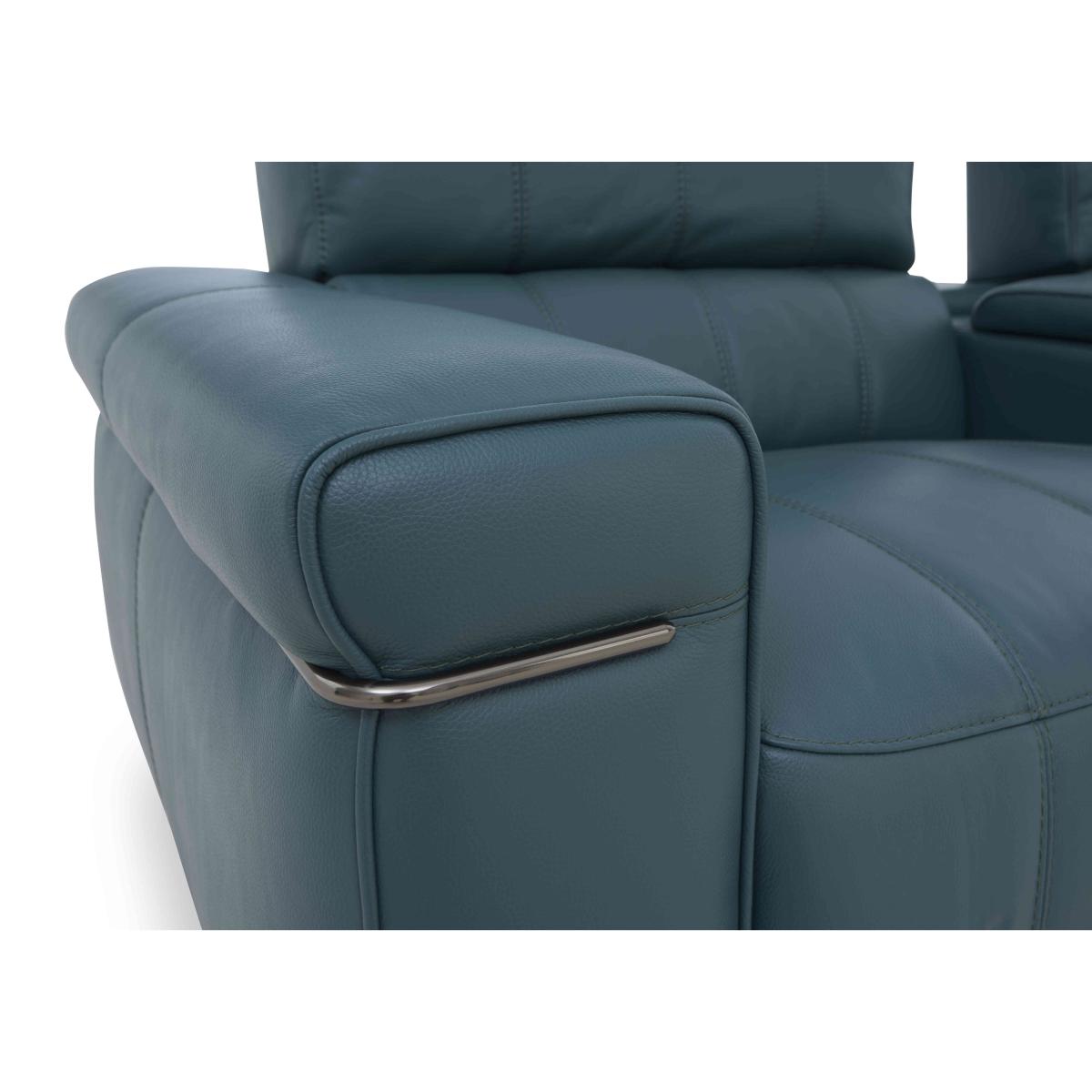 Turn your living room into the most stylish of in-home cinemas with sofas, chairs and footstools from our Homestage range. The collection includes stunning media sofas and armchairs that connect via Bluetooth to your TV or phone and have surround sound speakers hidden in the incredibly comfortable cushioning for the next level in 4. D entertainment. And with power recliners with independently-moving backrests and footrests, perfect-position power headrests, built-in massage units and sprung seats and backs, the comfort is every bit as enthralling. Made in Italy and available in a wide choice of soft fabric and 100% leather upholstery options, the Homestage range is a Furniture Village exclusive. Enjoy perfect comfort with precise power recliners and headrests alongside cool Italian style and 100% leather upholstery with this two-seater sofa. Why you’ll love it Contemporary Italian design ensures you’ll be relaxing in style. Power recliners with independent backrest and footrest motion. Perfect-position headrests mean perfect comfort, every time. Sprung seats and back for superbly balanced support wherever you sit. 100% leather upholstery with linear stitching in a huge choice of on-trend colours. Stiletto-style metal legs with a high-shine nickel-plated finish in black. Matching metal arm trim. Handmade in Italy. A Furniture Village exclusive. This 2-seater leather power recliner sofa is part of our Homestage range. What you need to know Medium comfort level. Seat suspension: no-sag springs. Seat cushioning: foam and inner coil spring. Cushioning is fixed. Back suspension: rubber webbing. Back cushioning: foam and loose fibre. Cushioning is fixed. Arm cushioning: foam and fibre. Please allow time for new recliners to ease. Minor gaps are necessary to ensure ease of recliner motion and may be exaggerated depending on floor type. Leather has unique marks and characteristics with variation in colour and texture. Leather softens with use. Smoothing the tops of leather cushions prevents signs of visual comfort. Please read our upholstery care guide for more advice.